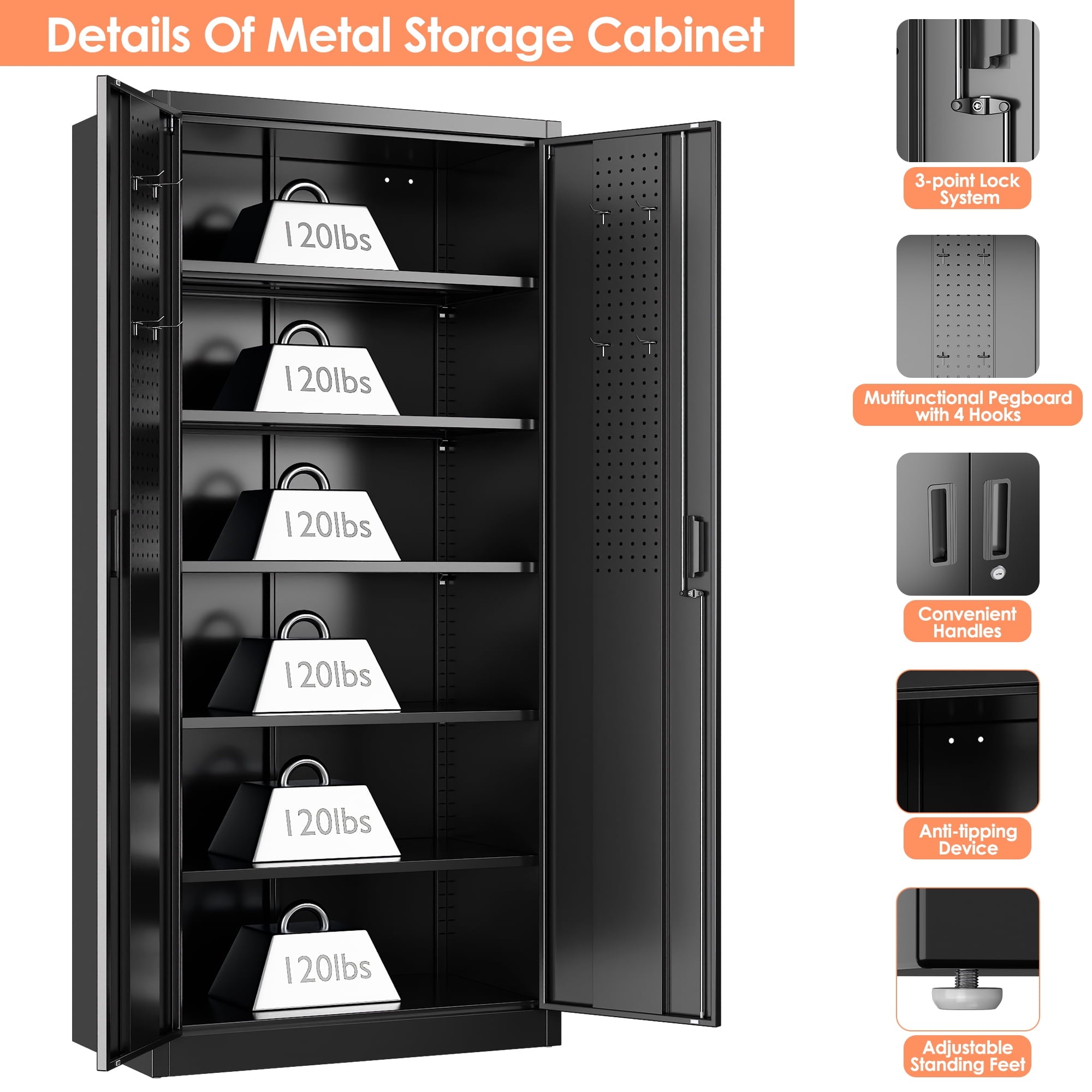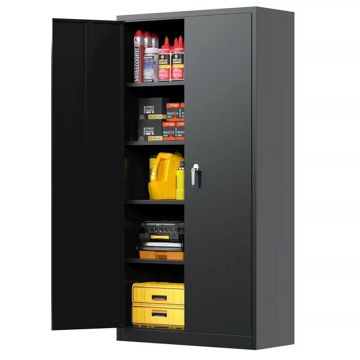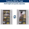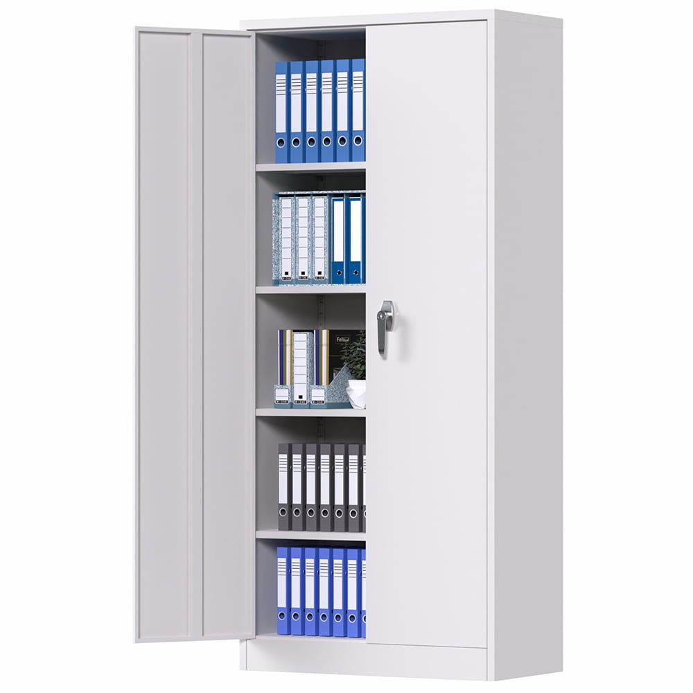 【Large Capacity】: This 2 door storage cabinet with 5 adjustable shelves that can be adjusted. Besides, each shelf of this metal office cabinet can hold up to 120lbs. It will meet your needs to accommodate items as much as you want.