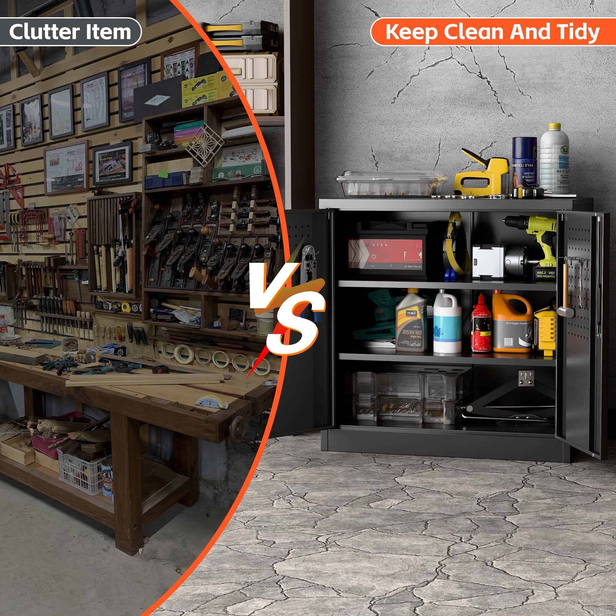 【Pegboard & Hooks】Redesign your organizing ways, hang up everything on the door, get effortless accessible for a variety of small hardware, no more searching for things among the clutter.