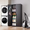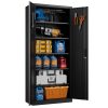 【High-quality Material】: Our black locking metal storage cabinet features a strong and sturdy metal frame with a nice epoxy power coated finish for resistance to chipping, scraping, corrosion and rust. Whatever indoor or outdoor, it is perfectly suitable for you, like office, home,school, workshop.