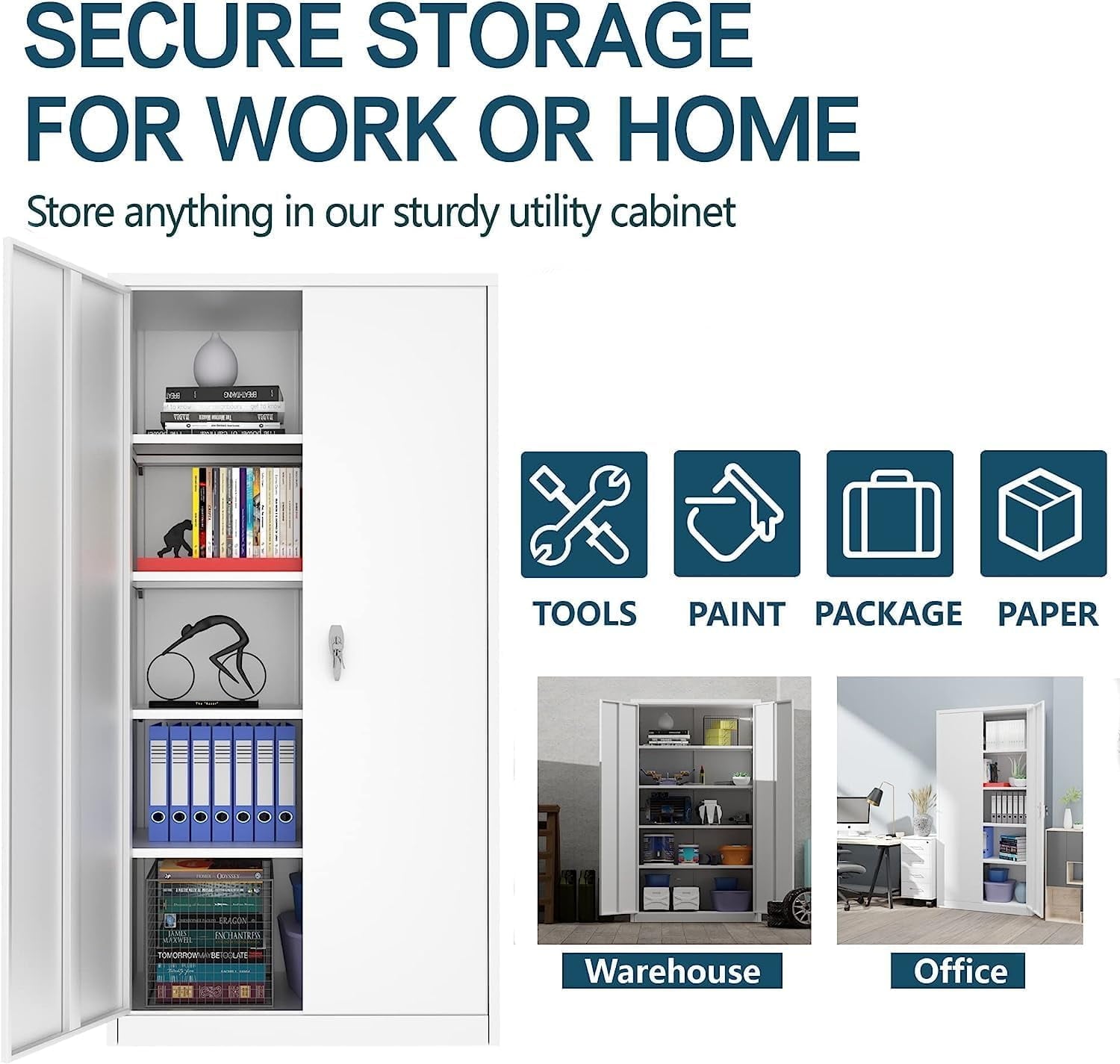 space, our metal storage cabinet is the great solution to keep your items safe,secure and well organized! The metal cabinet can be widely used in office, garages, basements, home, archives, warehouse, or anywhere storage space is required. You will
