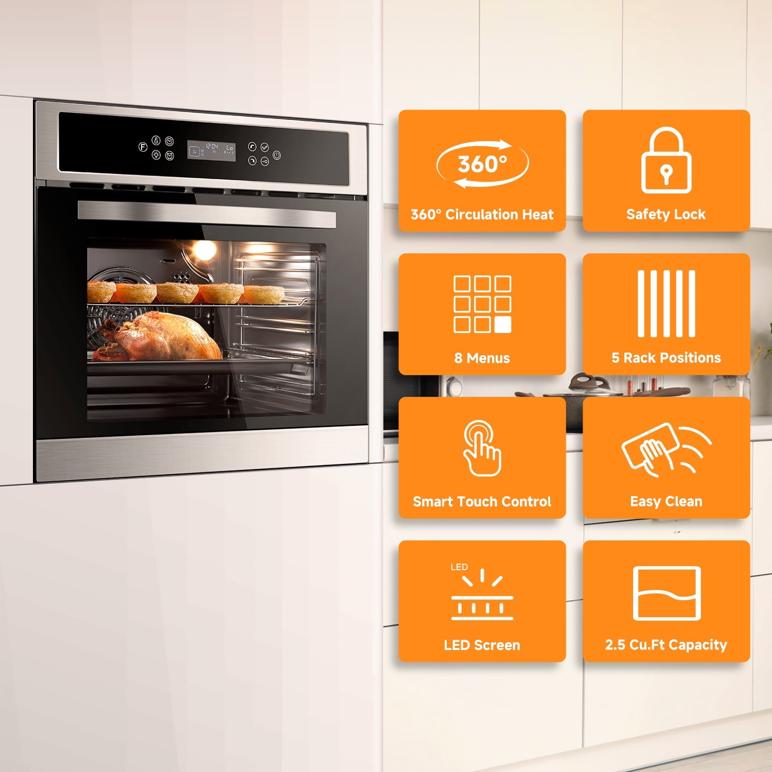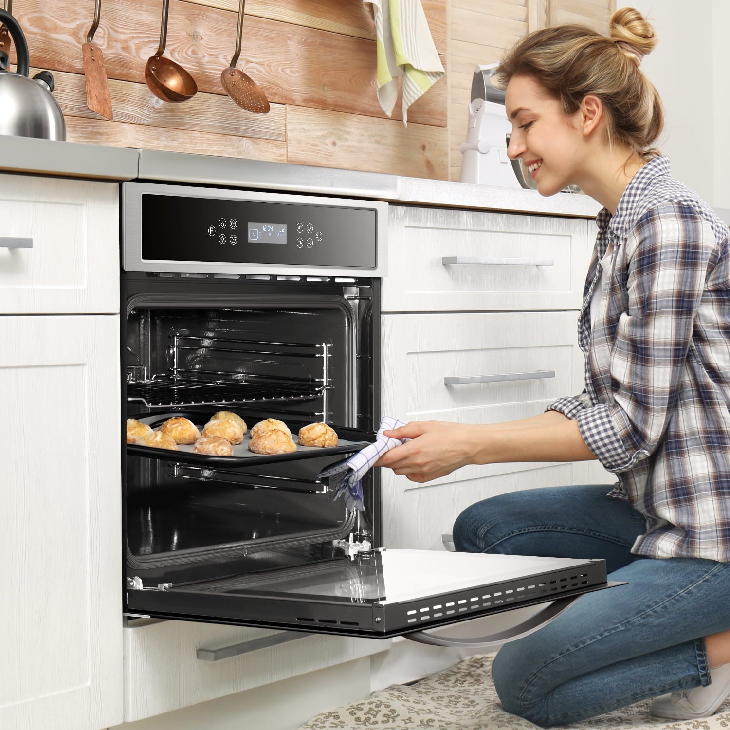 - ✅【Perfectly Fit Your Kitchen】 This 24-inch wall oven has a product size of 23.4″x 22.24″x 23.4″(W*D*H) and a built-in size of 22.24″x 21.85″x 23.4″(W*D*H). With a modern design, it matches your kitchen perfectly. Compatible with installation under any induction hob or gas cooktop.