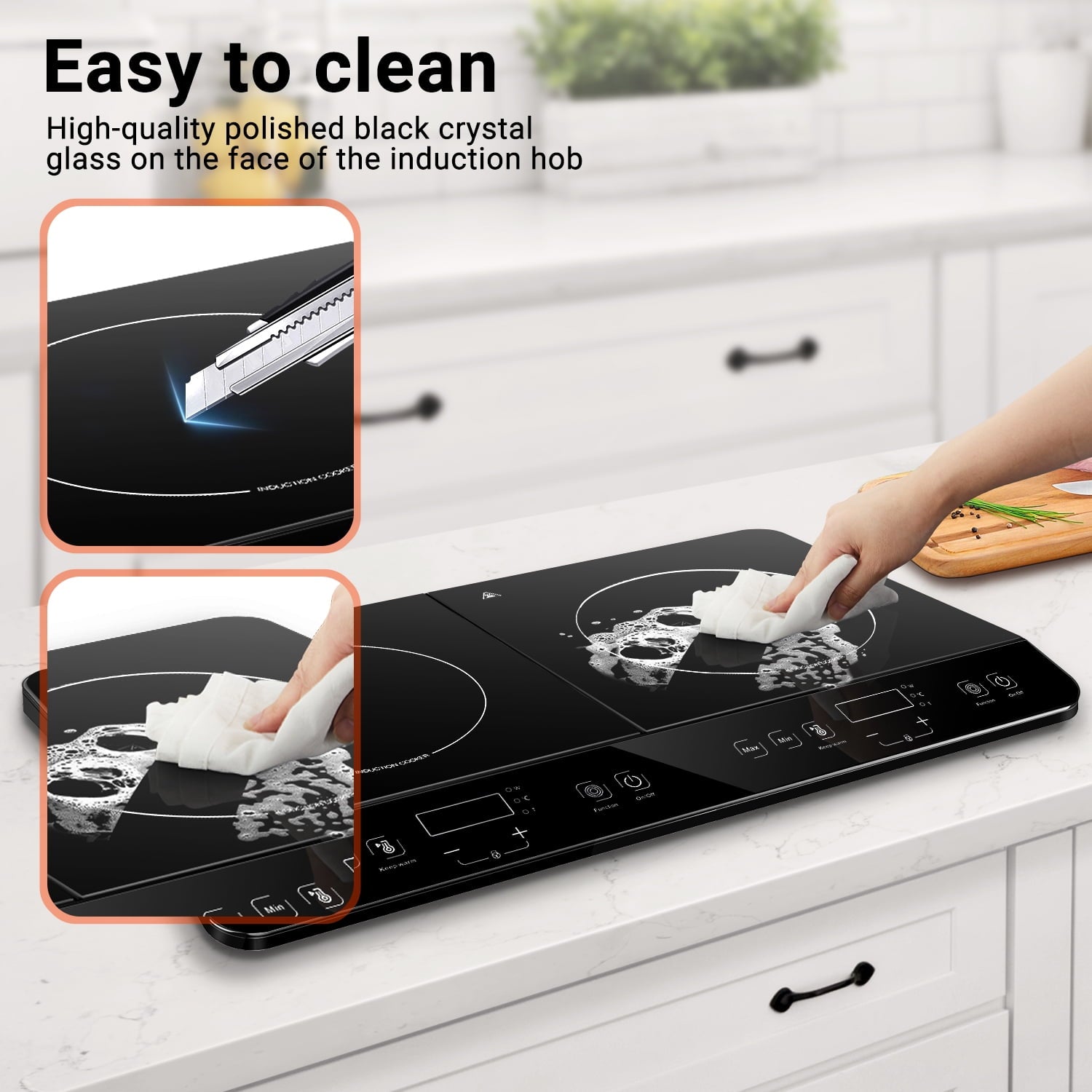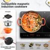 - 🔥【Portable & Black Crystal Easy Maintenance】Stylish Design, Fast, energy saving, and easy to clean. The 2 burner electric cooktop will work off a home power supply, which makes it suitable for parties and holidays etc., The outstanding design makes the portable induction hob not only suitable for cooking in your kitchen, but is also portable. Perfect for camping and company. The electric stove burner is compatible with magnetic cookware such as cast iron, enameled steel, or magnetic stainless steel.