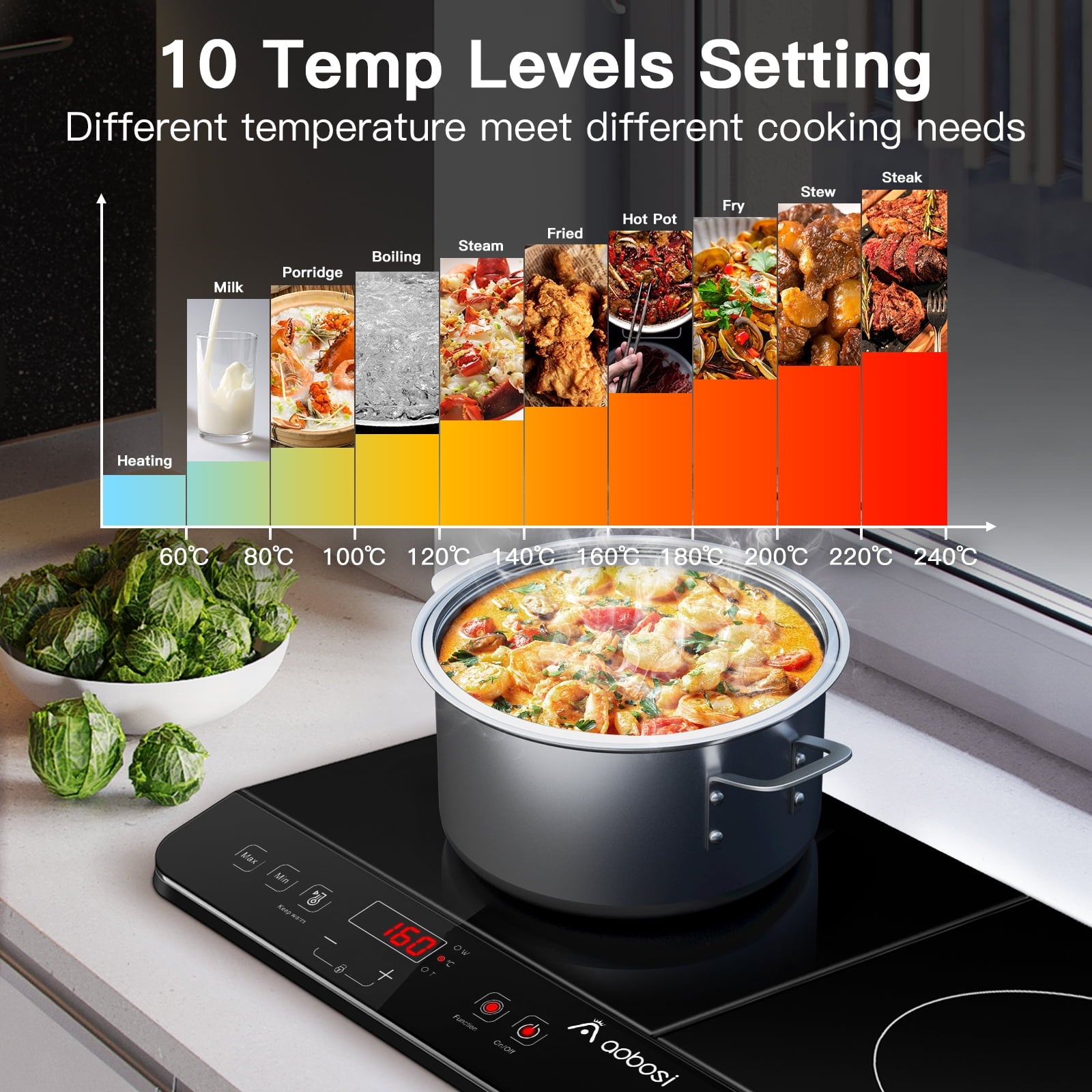 - 🔥【Children Lock & 4H Keep-Warm Timer】Aobosi double induction hotplate has overheating, over-pressure, and over-current protection. Pressing “+” and “-” at the same time will be locked, safe for the family with kids for long-term use. Up to four hours keep-warm timer, which is worry-free to keep your water or soup 176℉ maintained during gathering or a party.