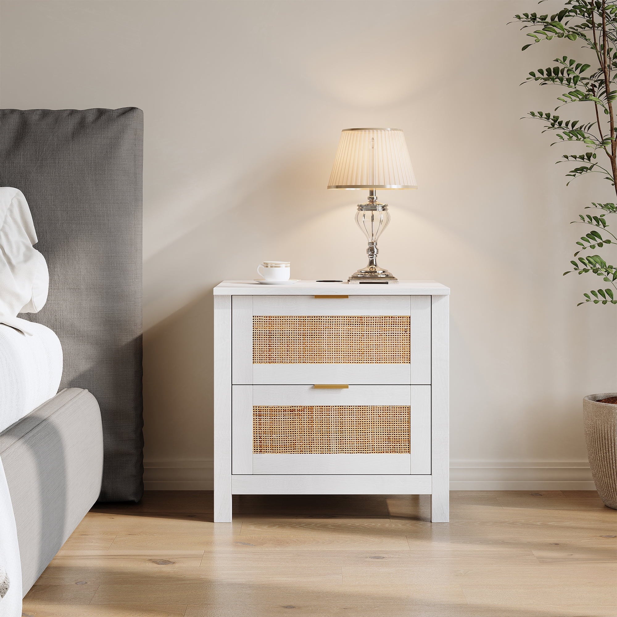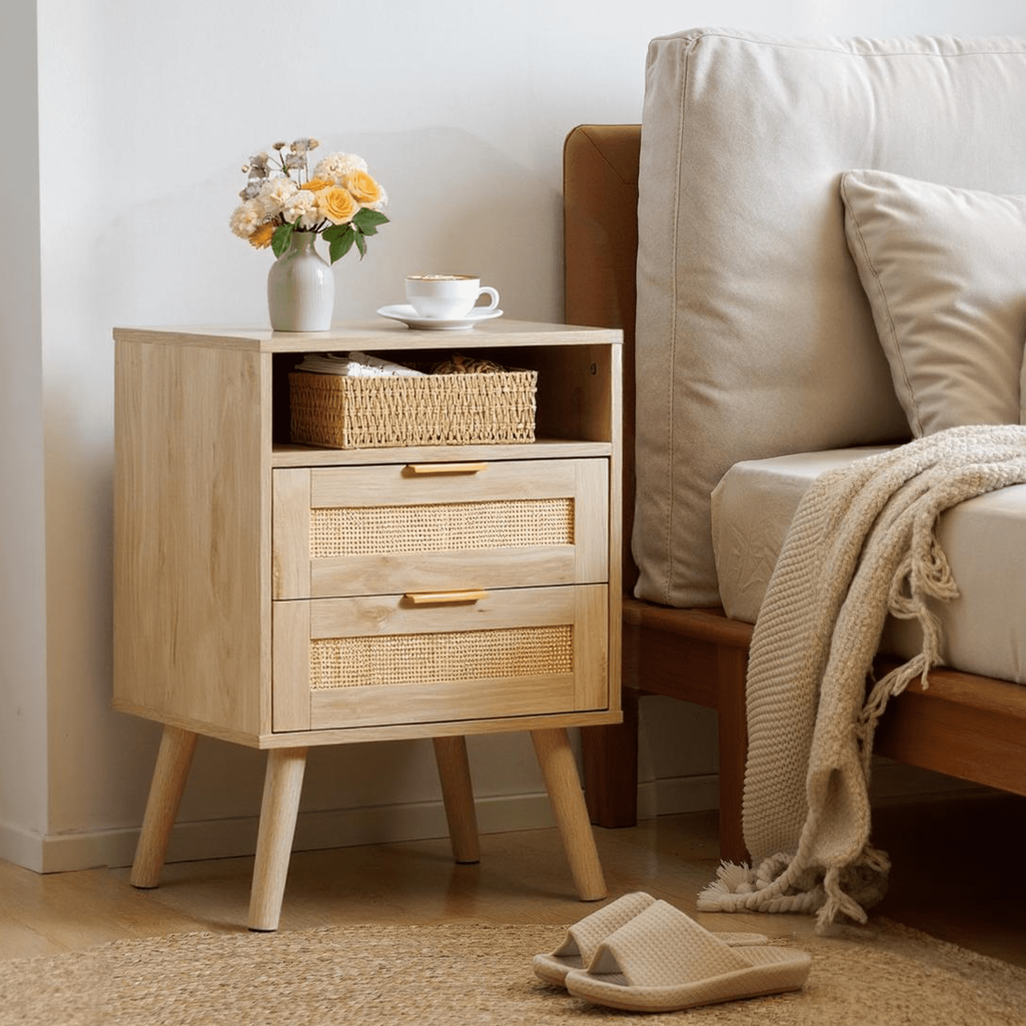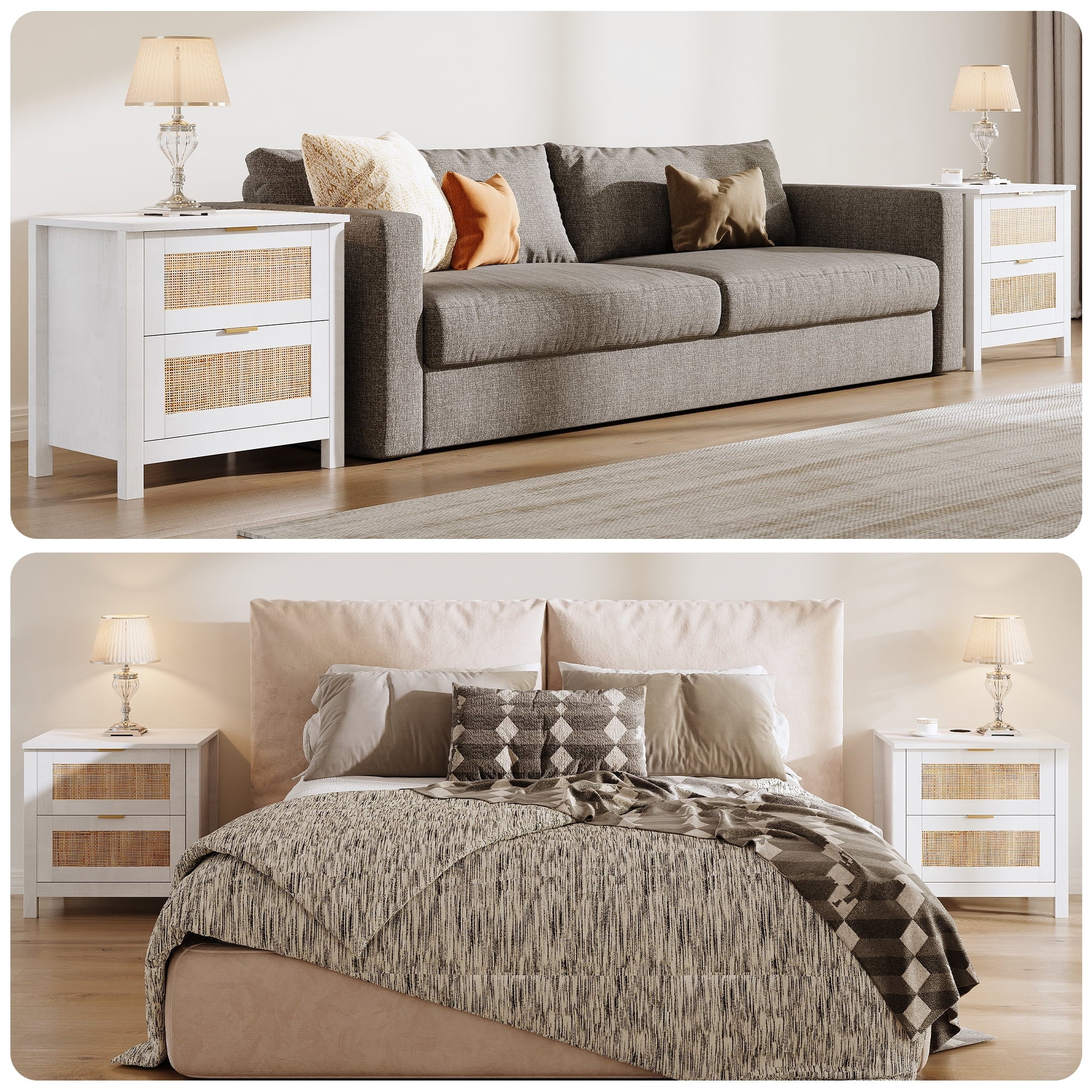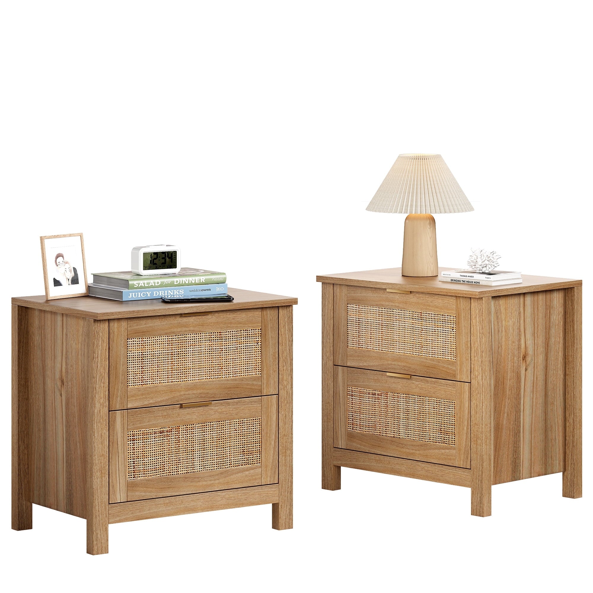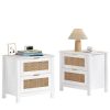 The AODAILIHB Nightstand 2-Piece Set combines style and functionality in a stunning white finish that complements any interior. Each wooden bedside table is made of natural rattan, which is superbly hygroscopic and heat-resistant to ensure durability. Versatile enough to easily transition from the bedroom to the living room, the natural wood bedside table can be used as either a chic end table or a decorative accent. Whether you’re looking to enhance your sleeping space or create a cozy atmosphere in your living room, they’re the perfect solution for both stylish and practical furniture needs.