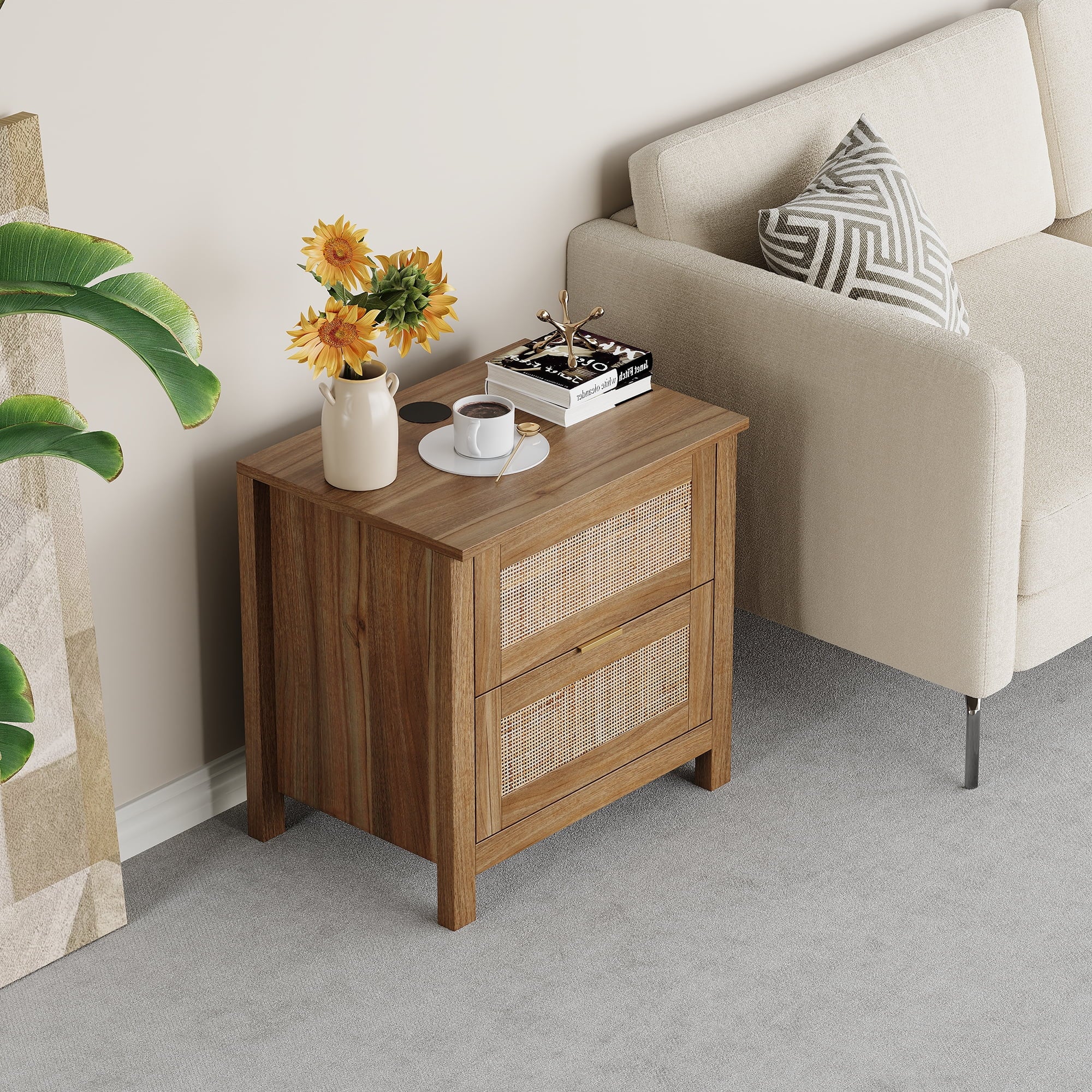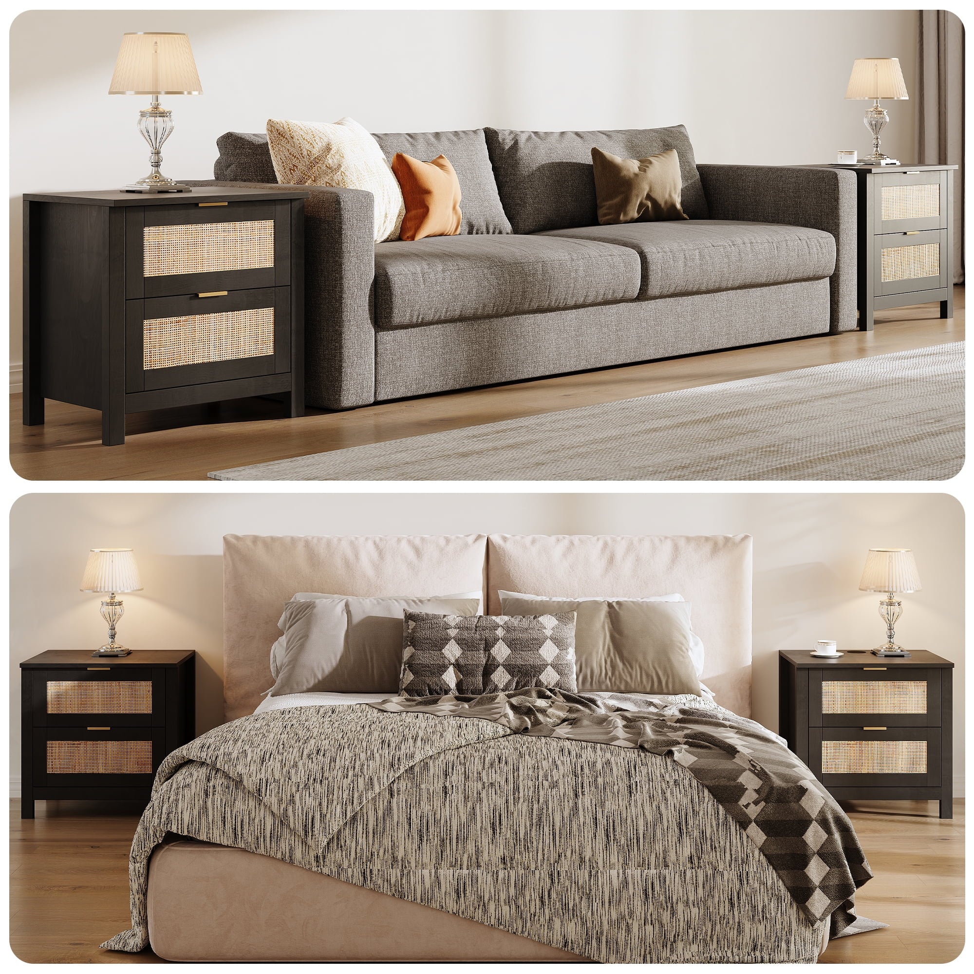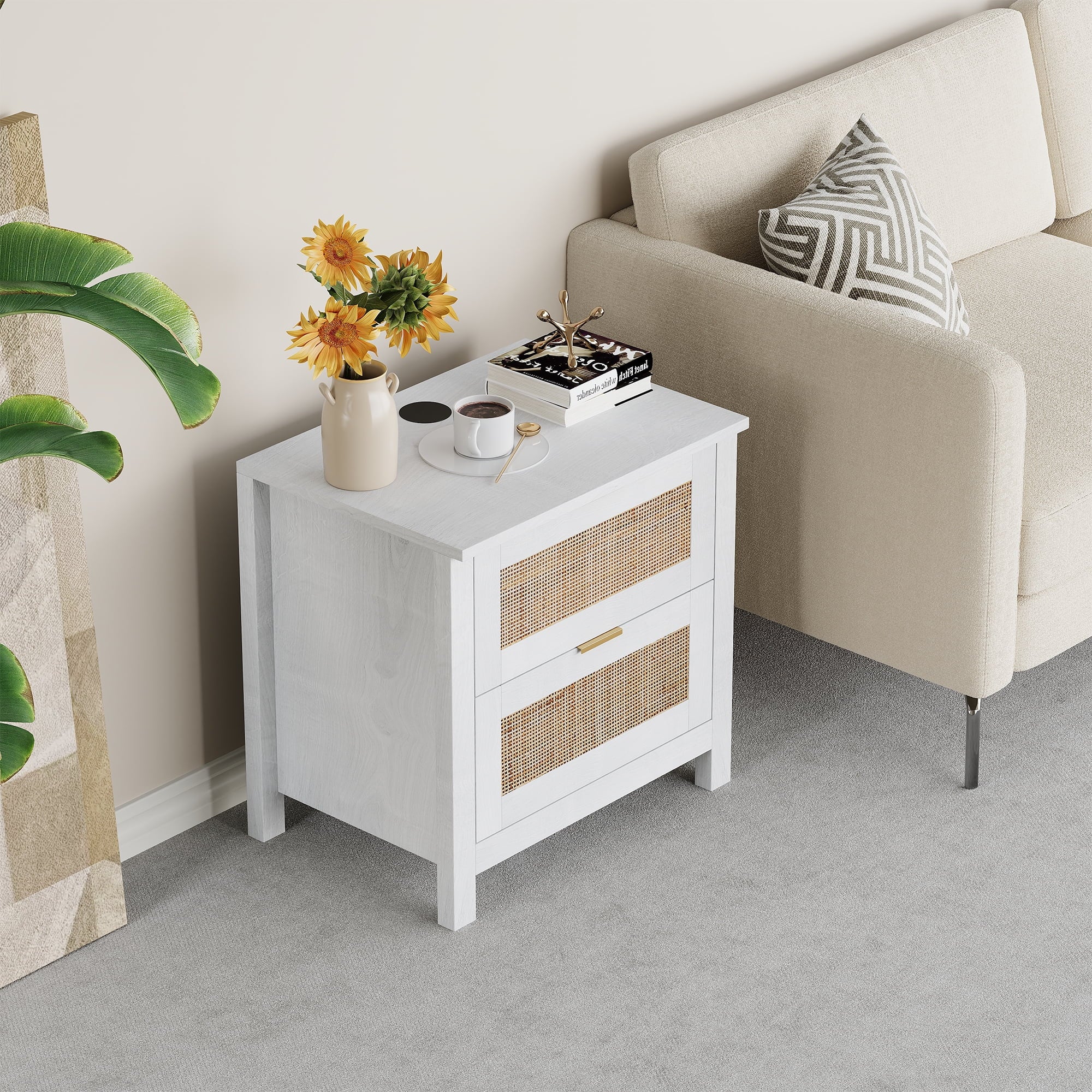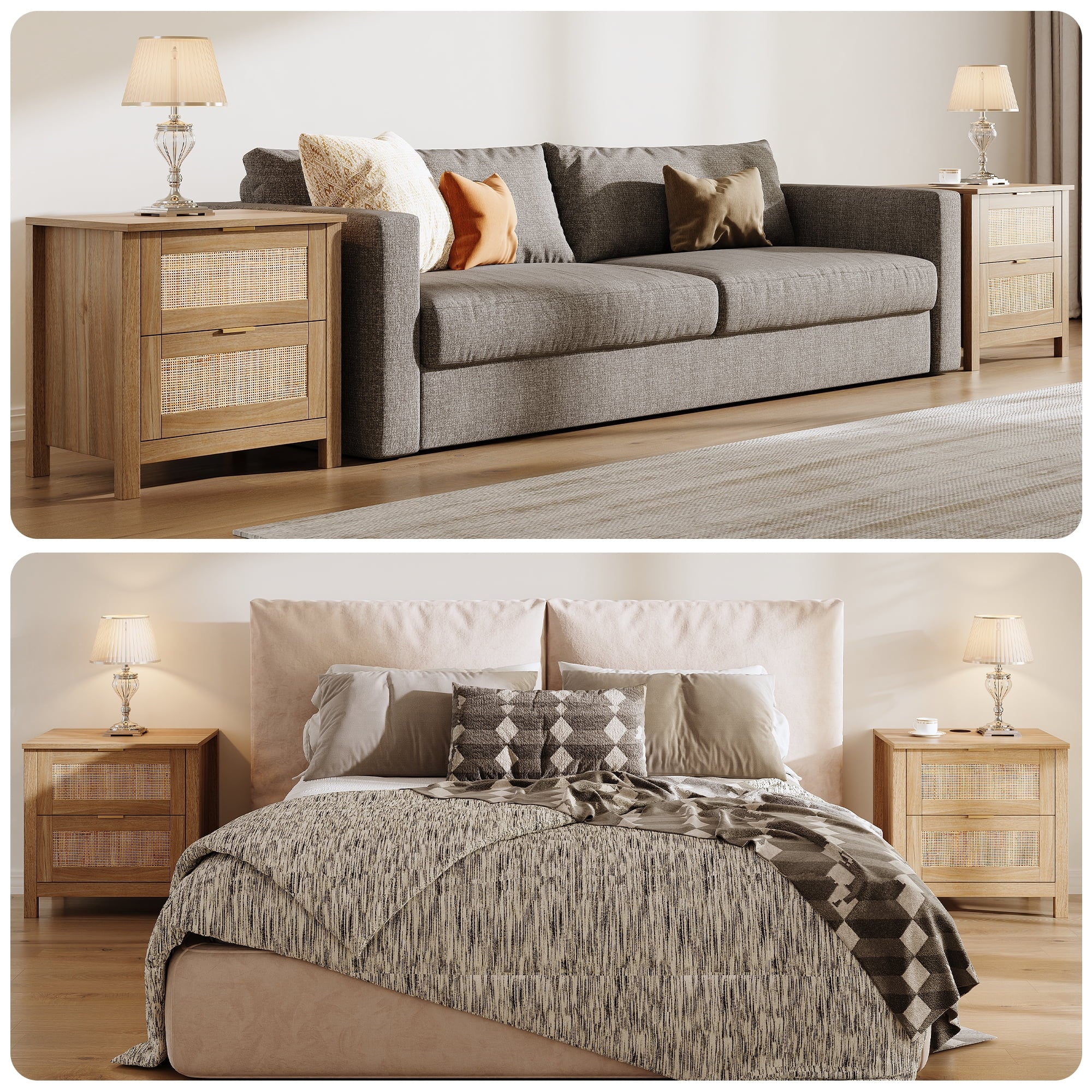 The AODAILIHB Nightstand 2-Piece Set combines style and functionality in a stunning white finish that complements any interior. Each wooden bedside table is made of natural rattan, which is superbly hygroscopic and heat-resistant to ensure durability. Versatile enough to easily transition from the bedroom to the living room, the natural wood bedside table can be used as either a chic end table or a decorative accent. Whether you’re looking to enhance your sleeping space or create a cozy atmosphere in your living room, they’re the perfect solution for both stylish and practical furniture needs.