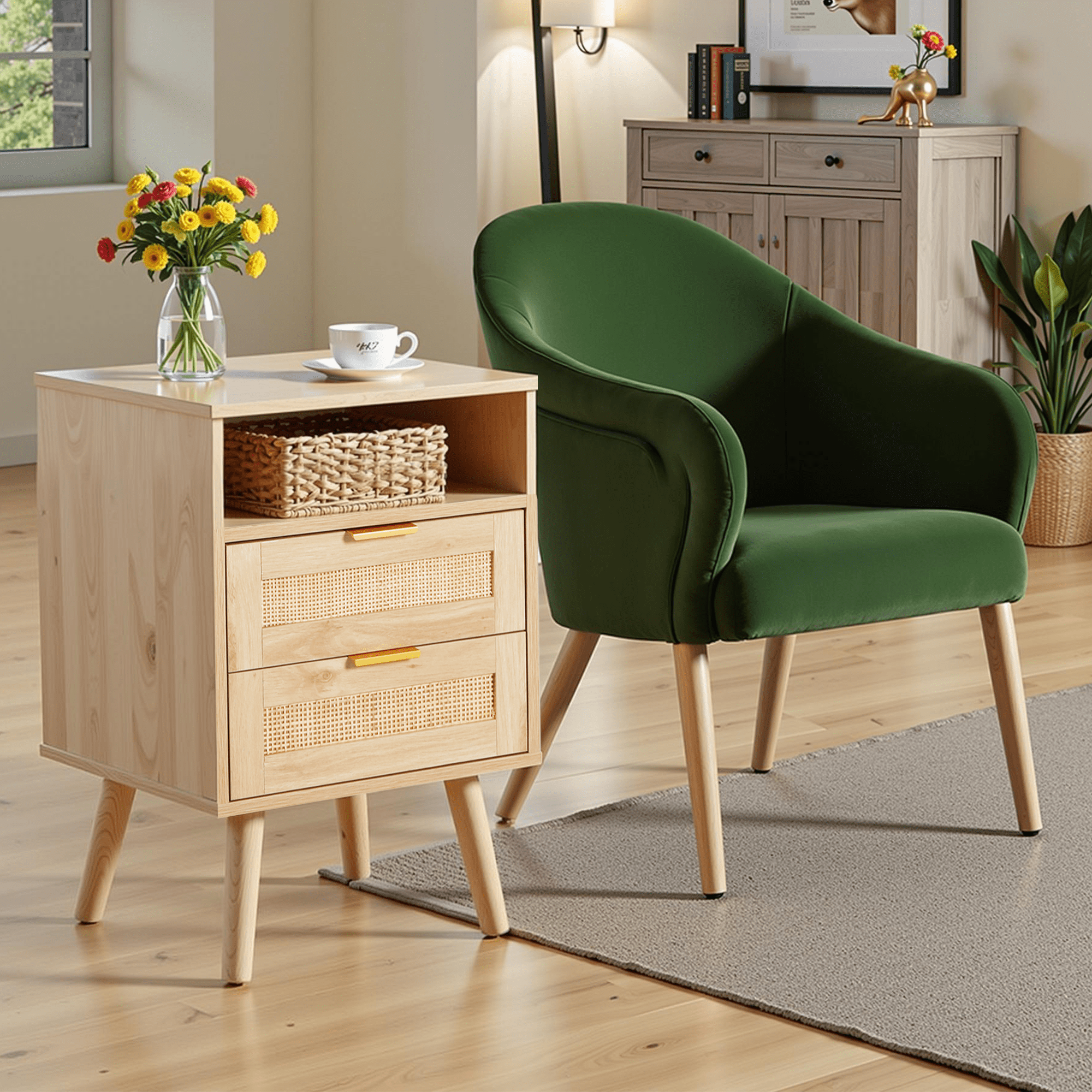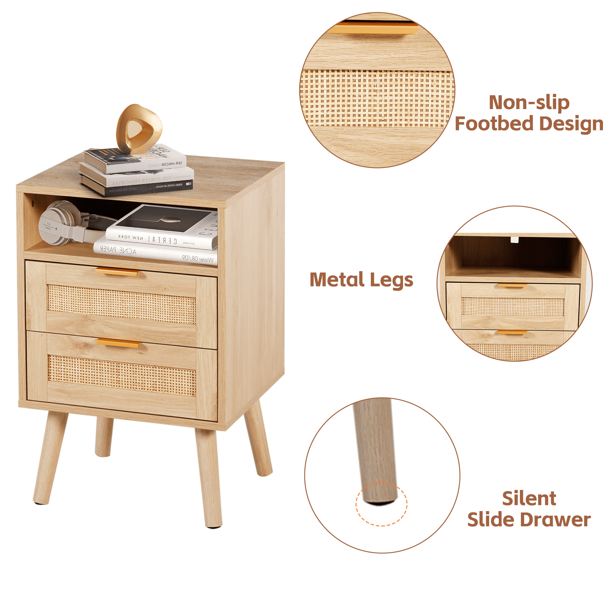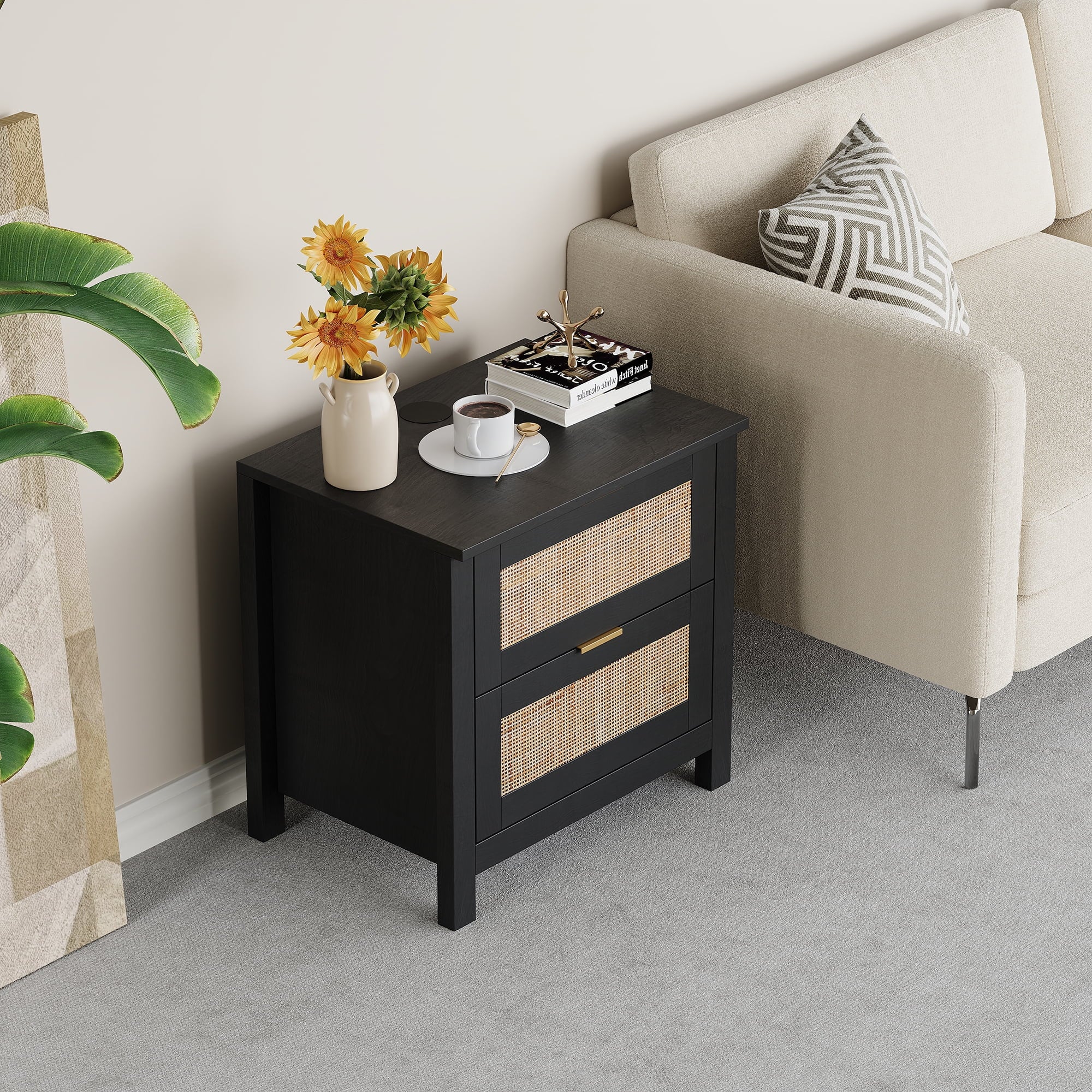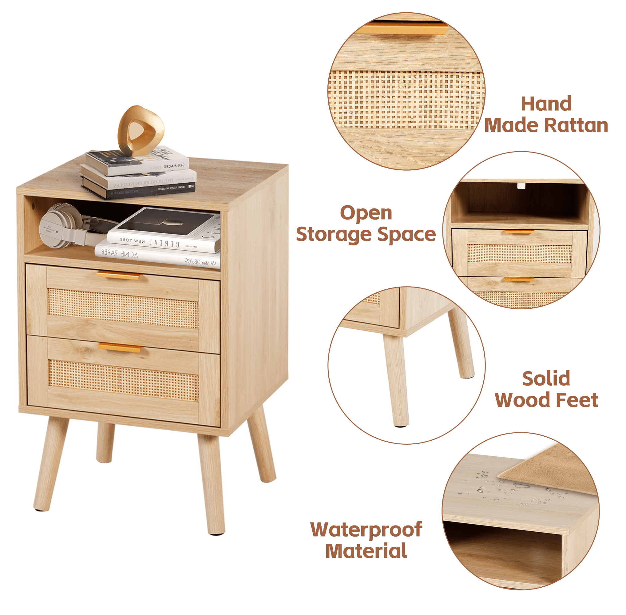 The AODAILIHB Nightstand 2-Piece Set combines style and functionality in a stunning white finish that complements any interior. Each wooden bedside table is made of natural rattan, which is superbly hygroscopic and heat-resistant to ensure durability. Versatile enough to easily transition from the bedroom to the living room, the natural wood bedside table can be used as either a chic end table or a decorative accent. Whether you’re looking to enhance your sleeping space or create a cozy atmosphere in your living room, they’re the perfect solution for both stylish and practical furniture needs.