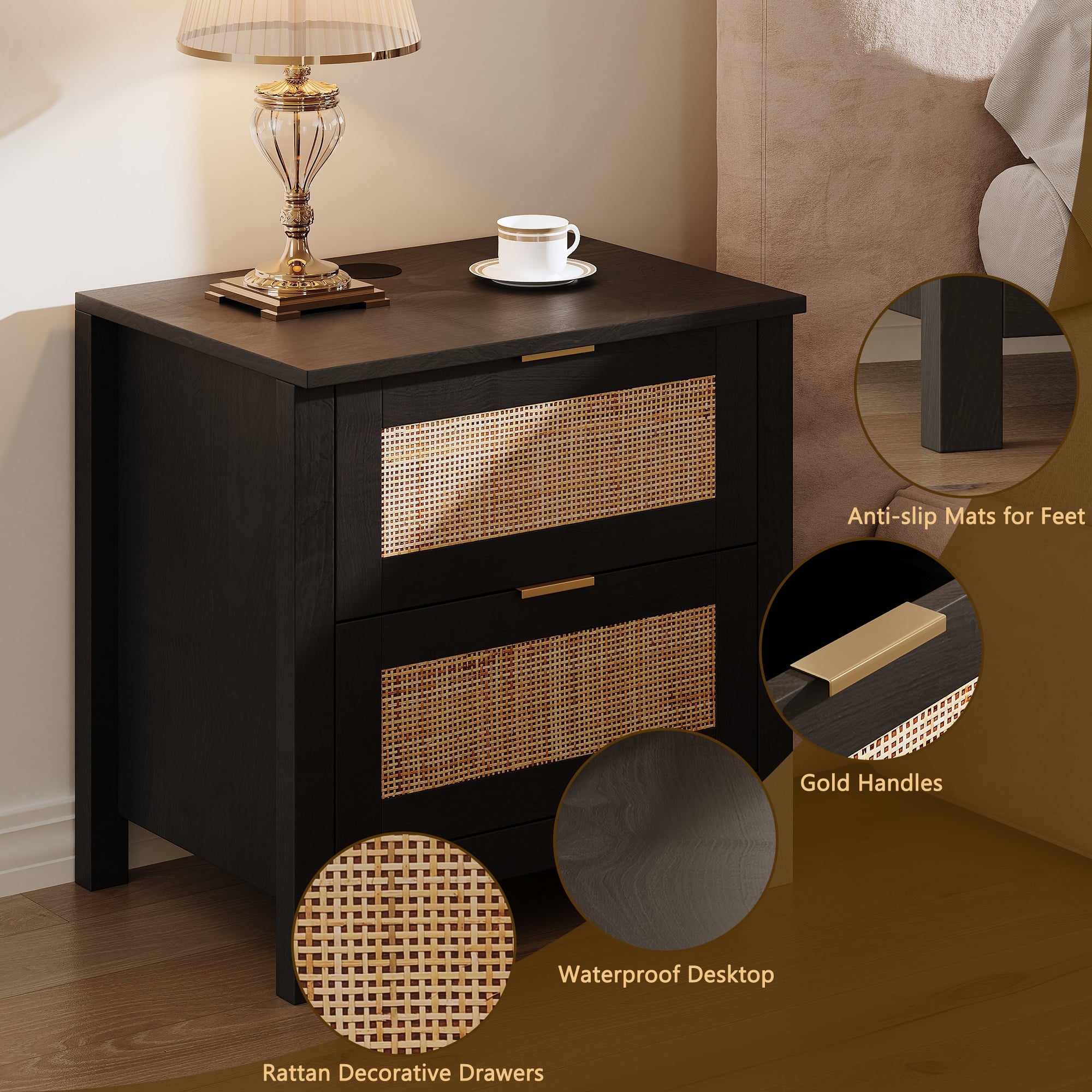 - natural rattan side table is made of non-low cost natural rattan, which has the effect of absorbing moisture and heat. Combined with the hand-woven technique, it creates the perfect shape that can complement a variety of bedroom styles.