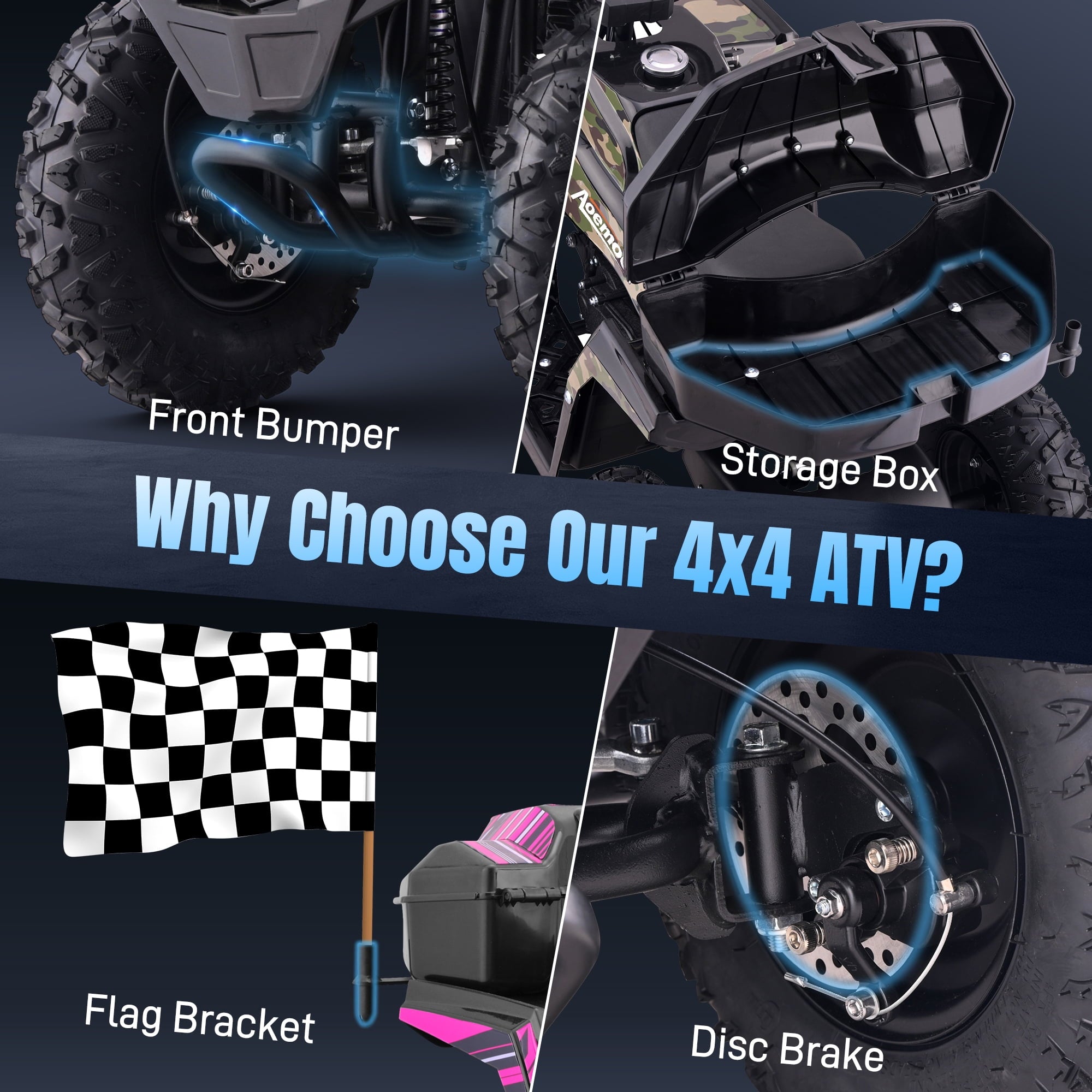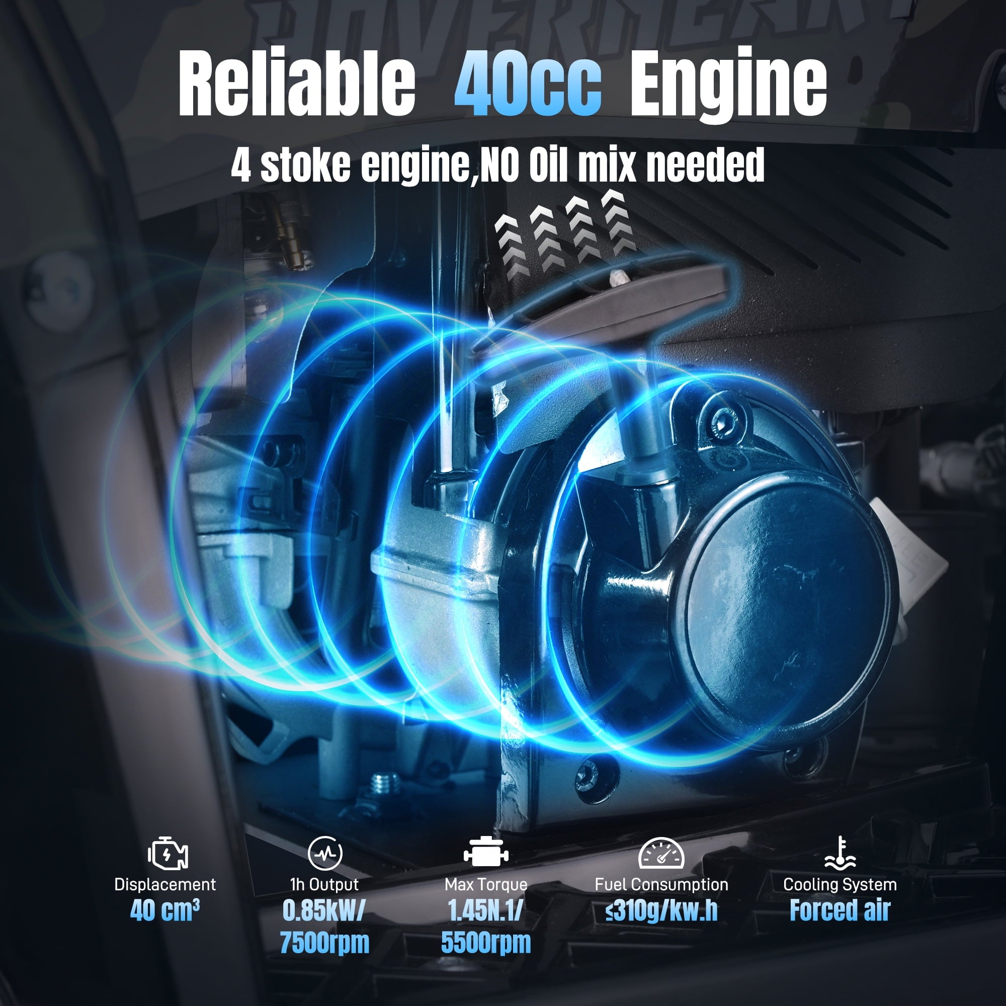 Aoemoe 40 cc gas-powered ride-on fun machine brings backyard adventure to a new level. The 4-stroke engine delivers smooth, torquey performance while the steel frame, dual shocks, and dependable rear disc brake tackle grass, dirt, and gravel with ease. Parents can set the top speed to either 10 mph or unlock up to 15.5 mph with the included limit-key, allowing skill-appropriate progression. A full 0.32-gal tank provides up to 45 minutes of continuous run time, and the built-in safety flag plus LED light bar keep the action visible at dusk. Assembly takes minutes—just bolt on the handlebar, front & rear shocks, add the included 15W-40 engine oil, fuel up, and go. Recommended for single riders up to 165 lb and ages 6+. Always wear a helmet and protective gear (not included).