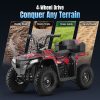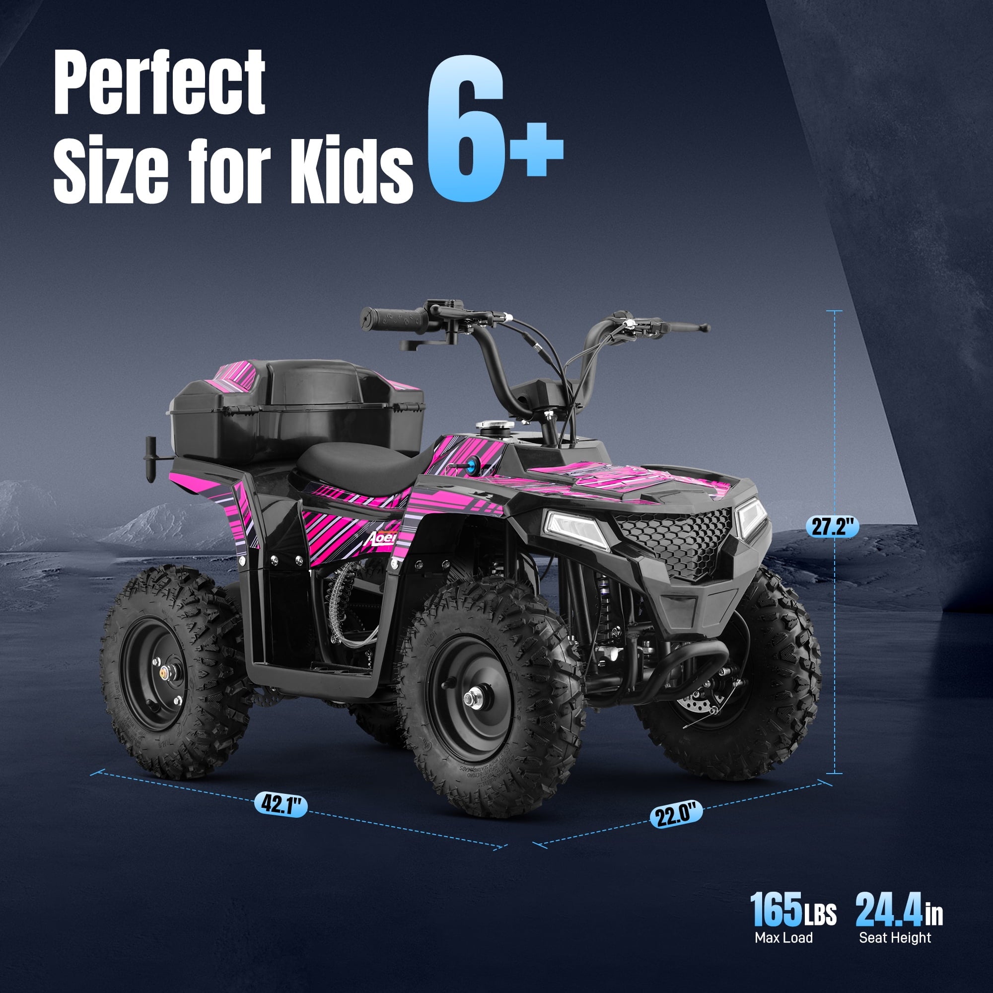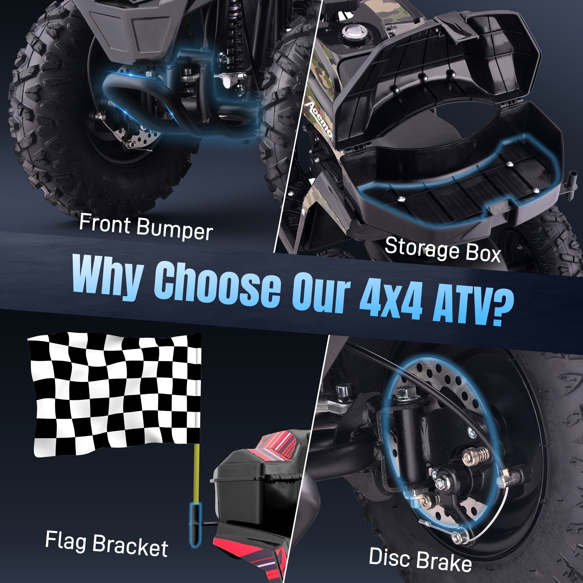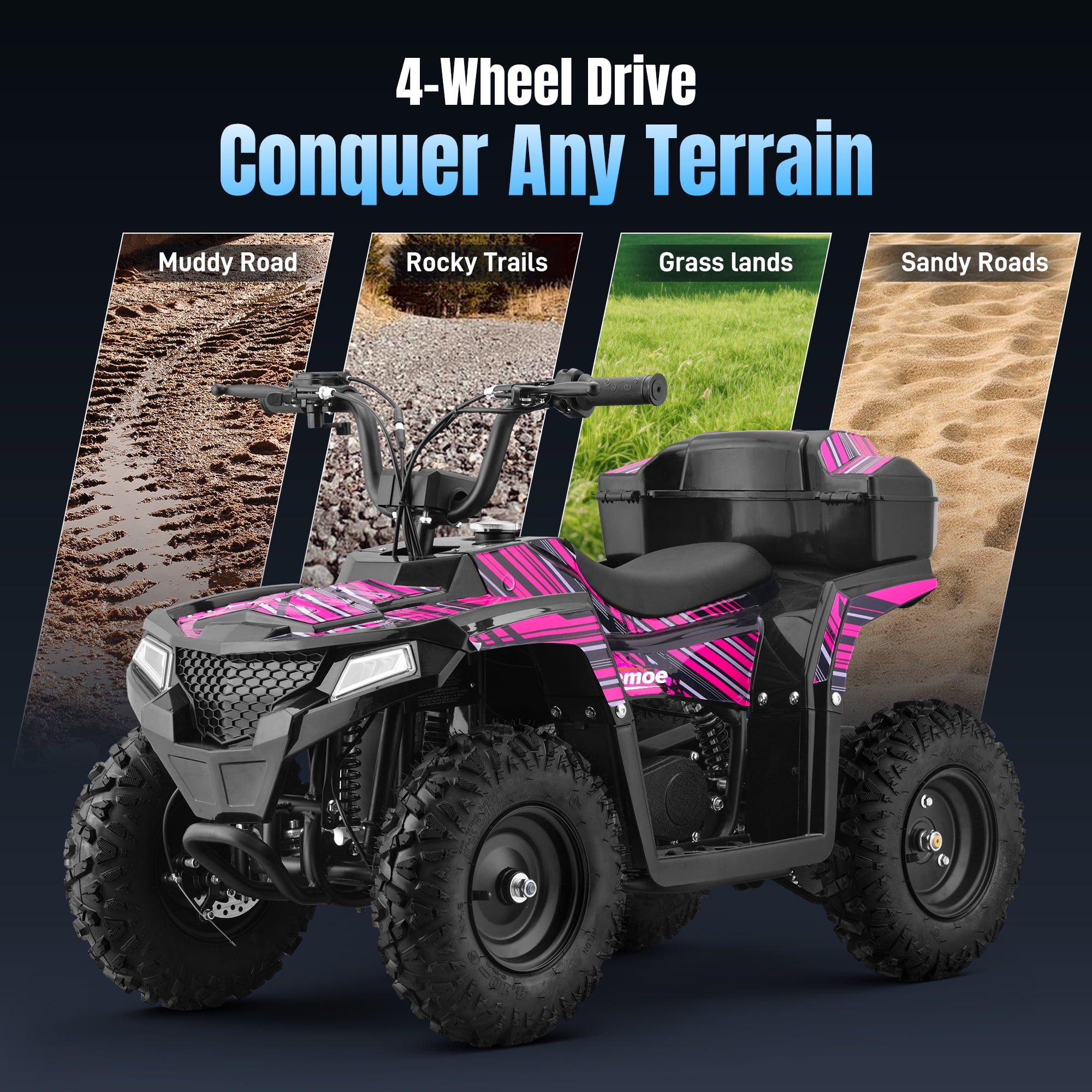 Aoemoe 40 cc gas-powered ride-on fun machine brings backyard adventure to a new level. The 4-stroke engine delivers smooth, torquey performance while the steel frame, dual shocks, and dependable rear disc brake tackle grass, dirt, and gravel with ease. Parents can set the top speed to either 10 mph or unlock up to 15.5 mph with the included limit-key, allowing skill-appropriate progression. A full 0.32-gal tank provides up to 45 minutes of continuous run time, and the built-in safety flag plus LED light bar keep the action visible at dusk. Assembly takes minutes—just bolt on the handlebar, front & rear shocks, add the included 15W-40 engine oil, fuel up, and go. Recommended for single riders up to 165 lb and ages 6+. Always wear a helmet and protective gear (not included).