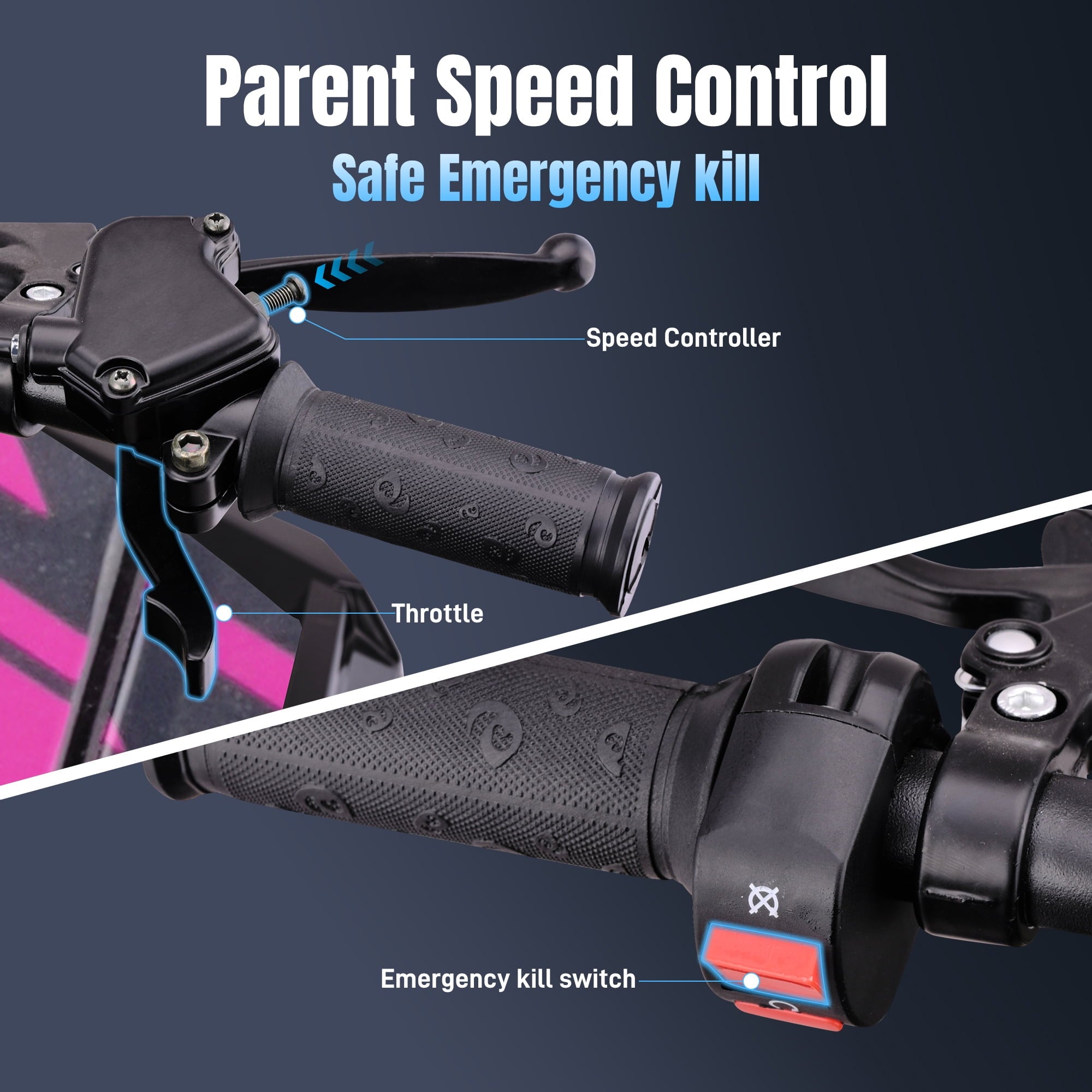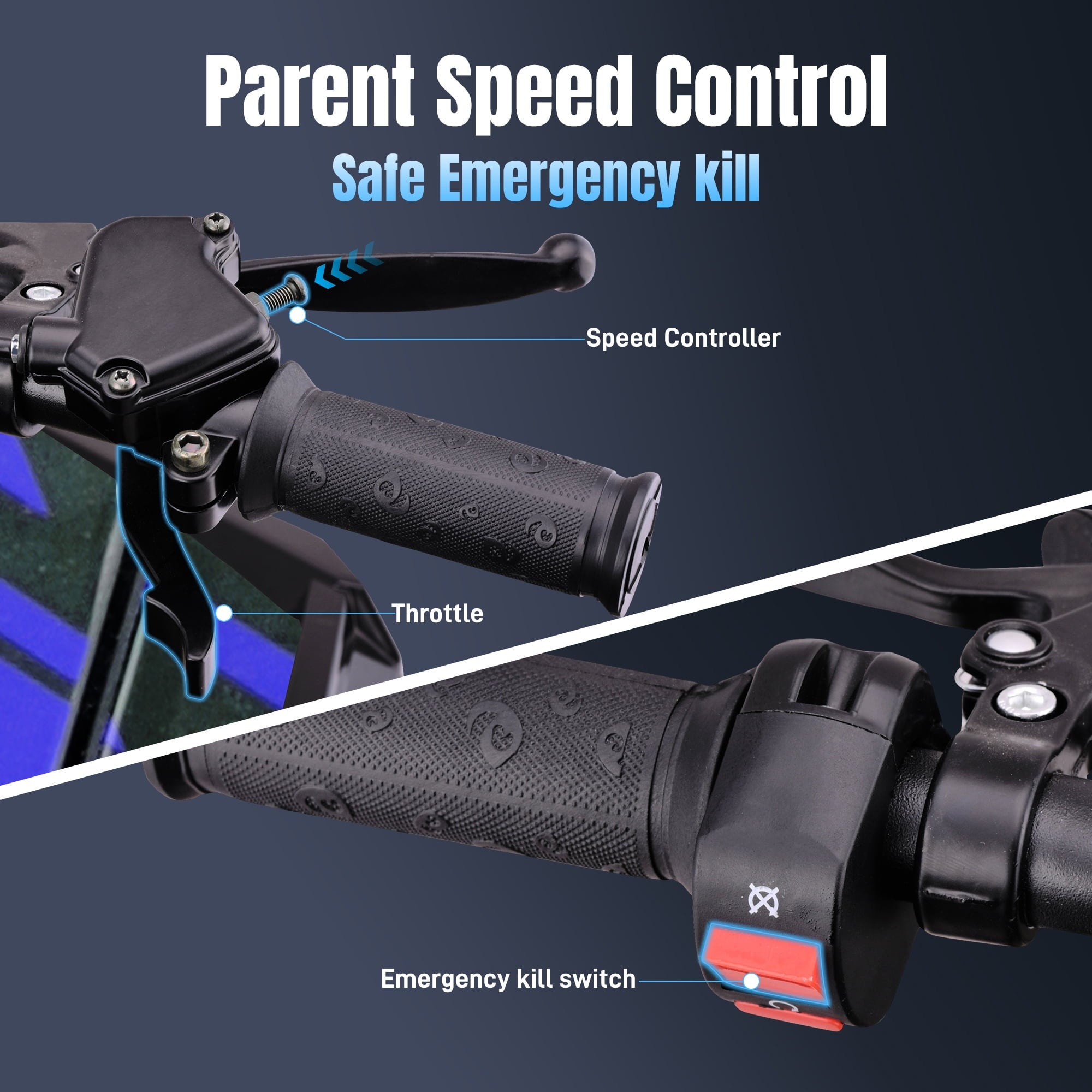 - Parent-Controlled Power – Choose 10 mph for beginners or use the limit-key to unlock up to 15.5 mph as experience grows.