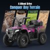 - Built for Trails – Rugged steel frame, front & rear shocks, and off-road tires conquer grass, dirt, and gravel.