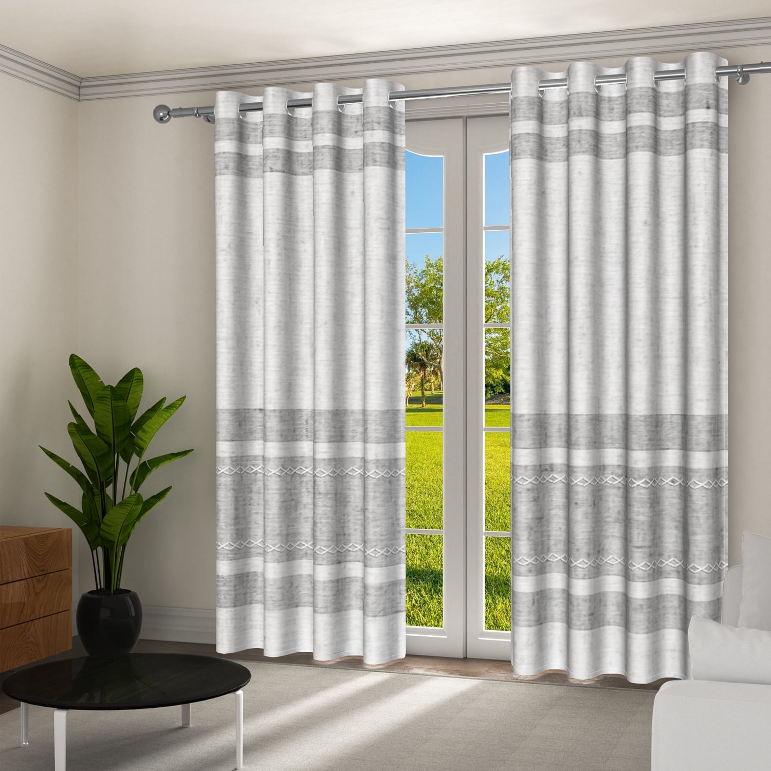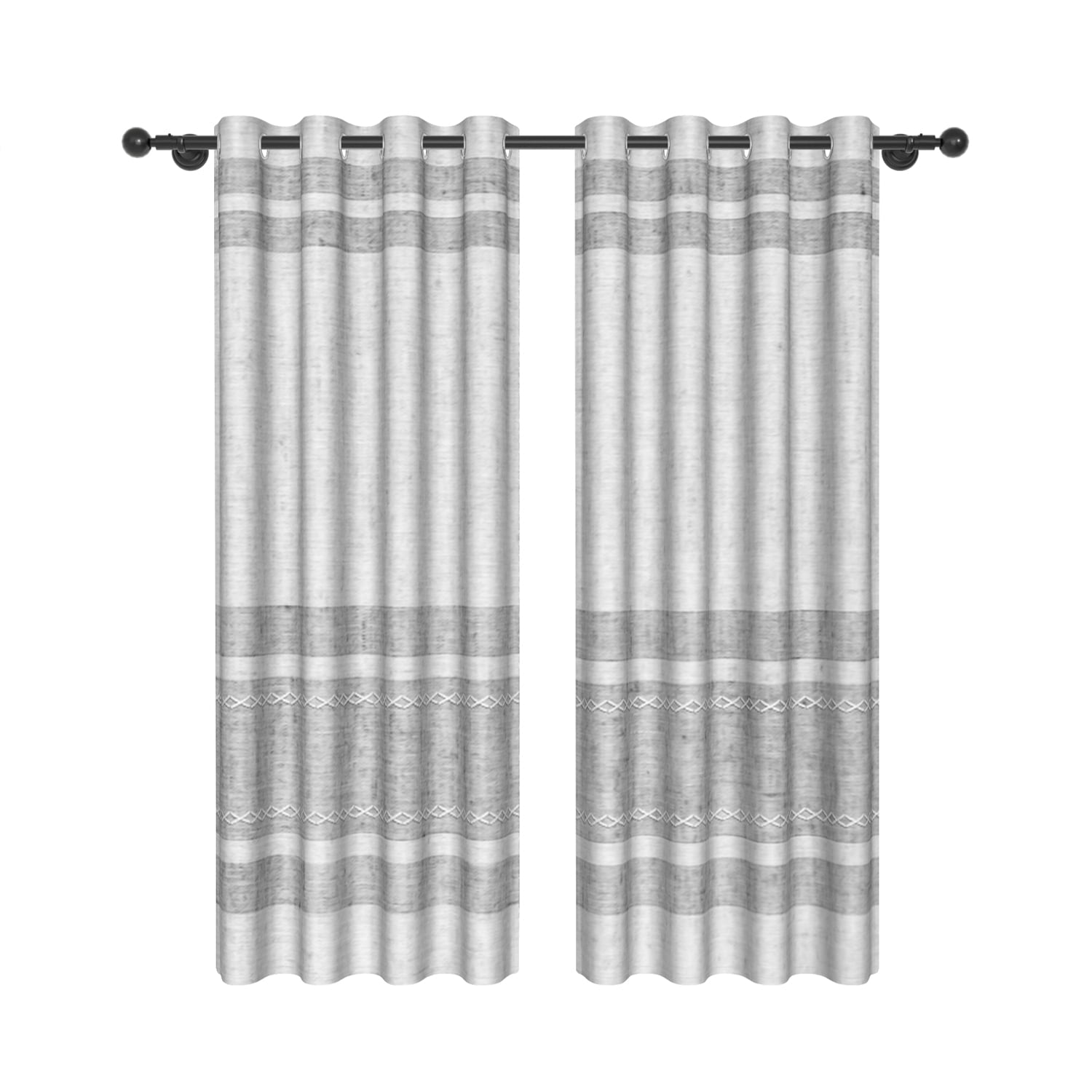 - Package:2 panels per package.Each package includes two Curtain Panels of 52″ wide x 84″ length with 8 metal grommets.Total size 104 inch wide.The design of silver grommet (1.6-inch inner diameter) is easy to install and slide grommets each.