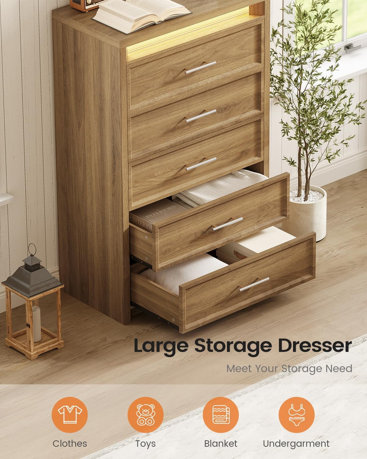 • 【Wood Dresser with Lightbox】This stylish AOGLLATI dresser features a built-in LED lightbox with 3 adjustable modes (Warm White, Yellow White, Cool White). This bedroom dresser can enrich your bedroom space and can also be used as a nightlight, it adds a cozy yet modern touch to your bedroom.