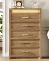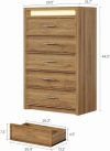 Home Dressers AOGLLATI Mid-Century Modern Dresser for Bedroom with 5 Drawer, Dressers& Chests of Drawers, 44.5” Tall Wood Dresser with 3 Color Lights for Bedroom, Wood