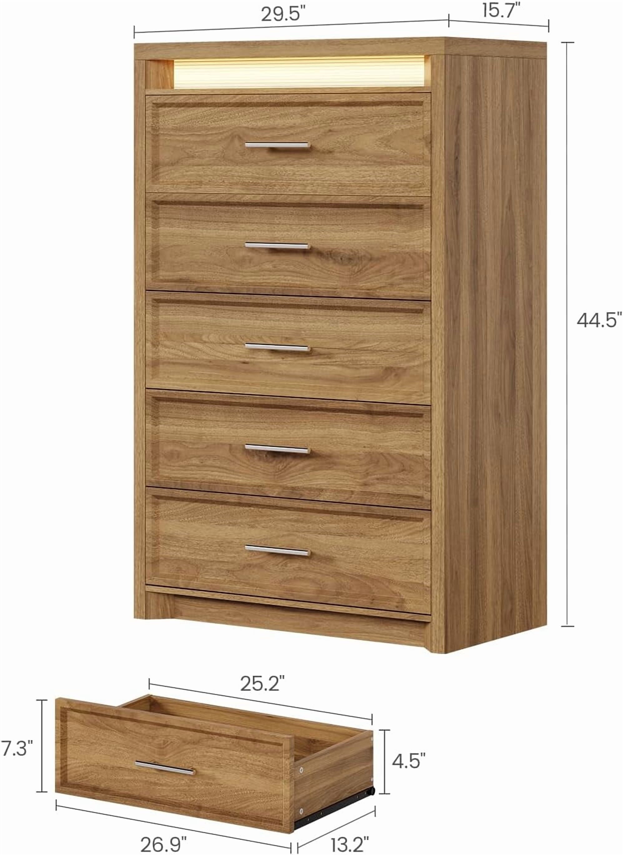AOGLLATI Mid-Century Modern Dresser for Bedroom with 5 Drawer, Dressers& Chests of Drawers, 44.5” Tall Wood Dresser with 3 Color Lights for Bedroom, Wood