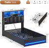 Home Beds AOGLLATI Upholstered Platform Twin Bed with 4 Storage Drawers & Charging Station & LED Lights, Black