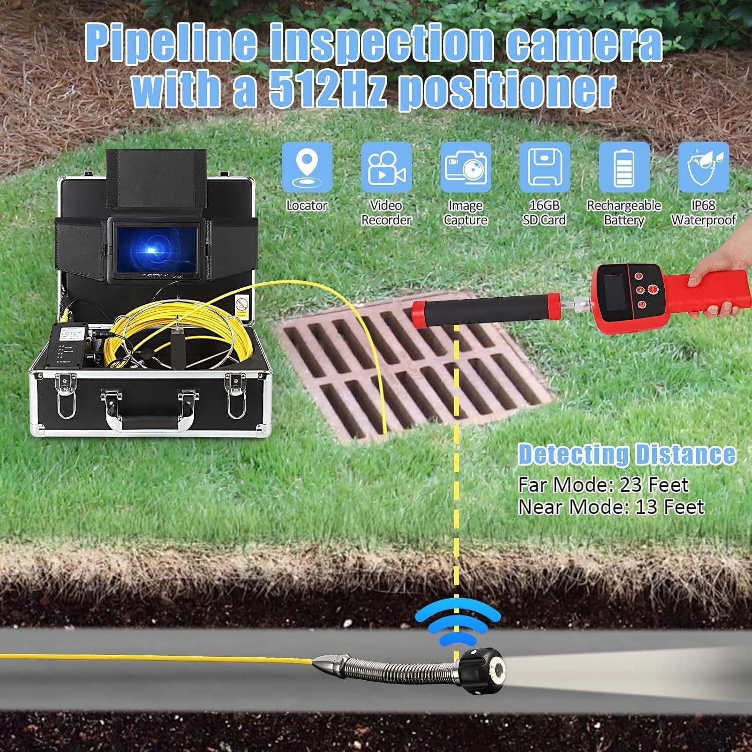 • Portable Drainage Camera: Featuring a 100ft semi-rigid cable, this inspection camera is ideal for deep pipe inspections. Its versatility makes it suitable for a variety of applications, including sewers, vent pipes, underground ducts, and chimneys, allowing for easy use in any setting.
