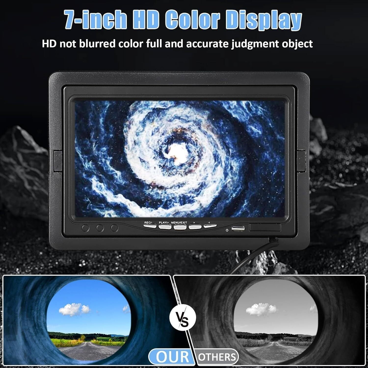 • HD Color Display: Equipped with a 7″ HD color display, the borescope provides clear, detailed images for precise inspections. Real-time video transmission allows for instant assessment of sewers and drains. A 16GB TF card is included for recording, with expandable storage up to 128GB.