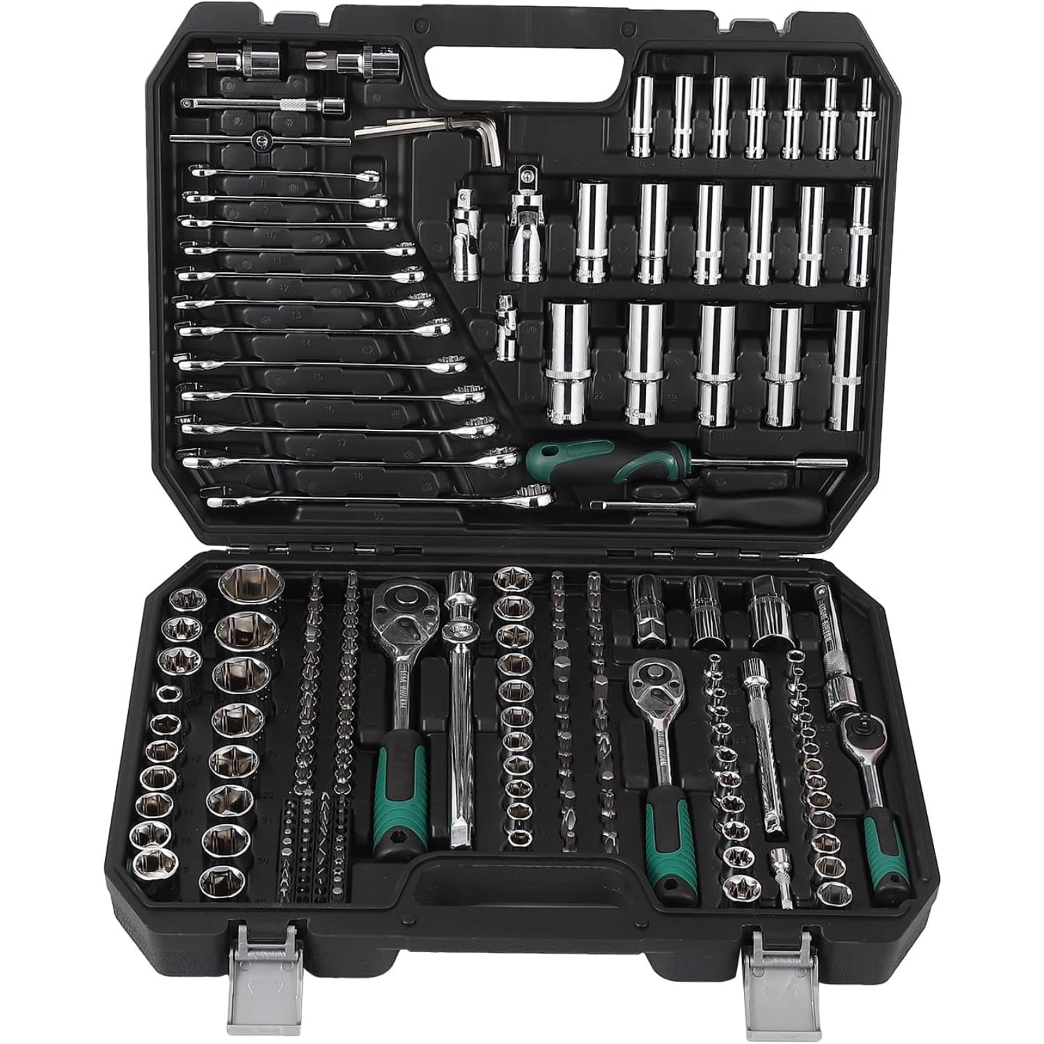 Take on repairs with confidence using the AOILE 216-Piece Mechanics Tool Set, an all one kit designed for automotive, home, and garage use. This complete set includes SAE and metric sockets, ratchets, wrenches, hex keys, screwdrivers, extensions, and more—everything you need to tackle jobs on cars, motorcycles, appliances, and furniture.