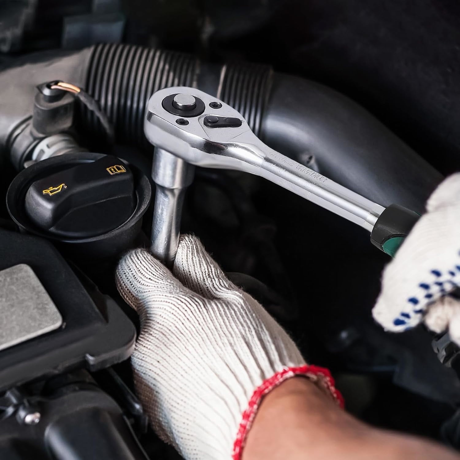 - Precision Ergonomics: 72-tooth ratchets, knurled sockets, and textured grips for superior handling and accuracy.