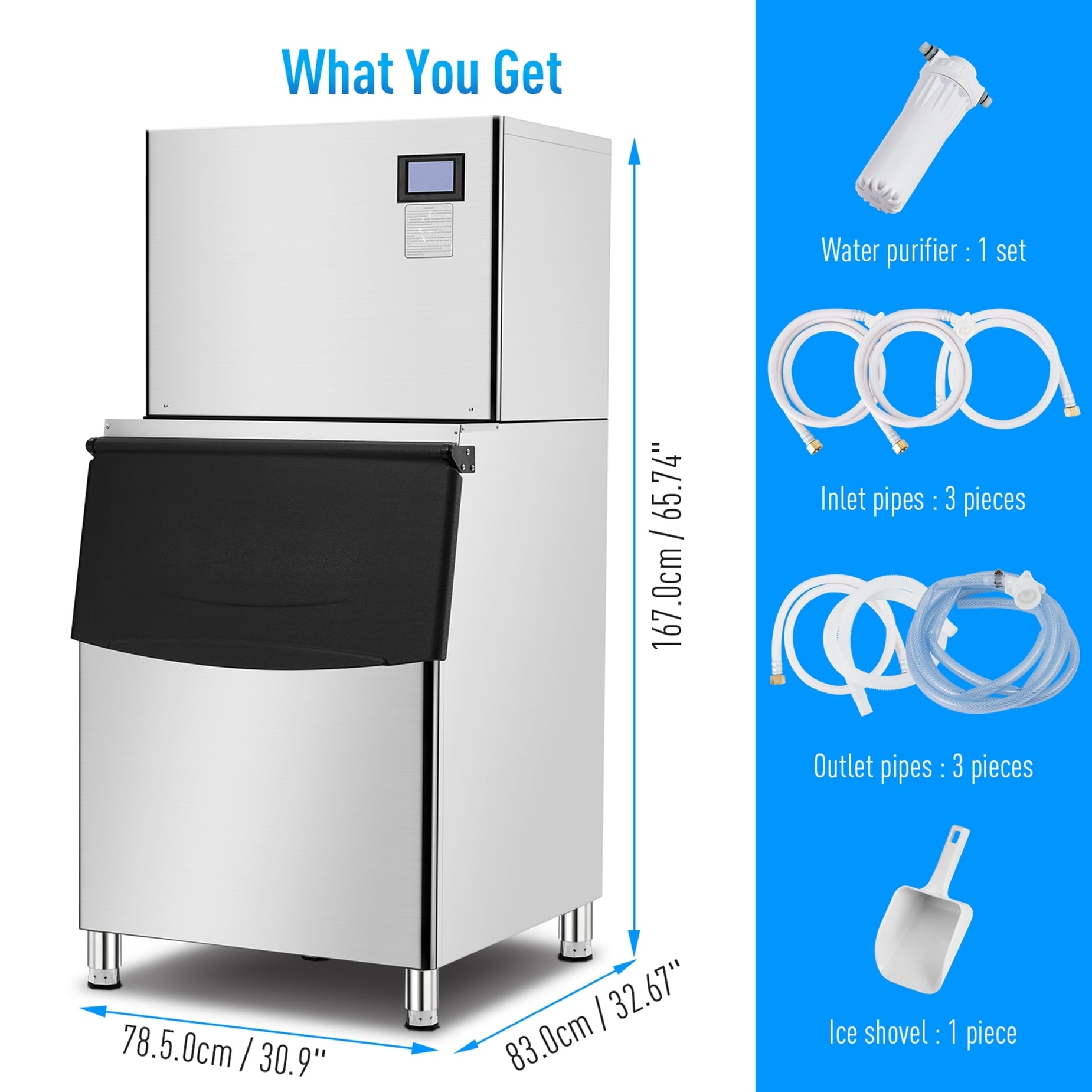 The split commercial ice maker can churn out an impressive 550 pounds of clear ice cubes a day, with a storage capacity of 350 pounds to prevent any spills. Compact and suitable for both home and commercial use, this freestanding ice maker is a fantastic addition to indoor/outdoor kitchens, small restaurants, bars, hotels, grocery stores, and more. Get ready to enjoy a cool summer like never before!