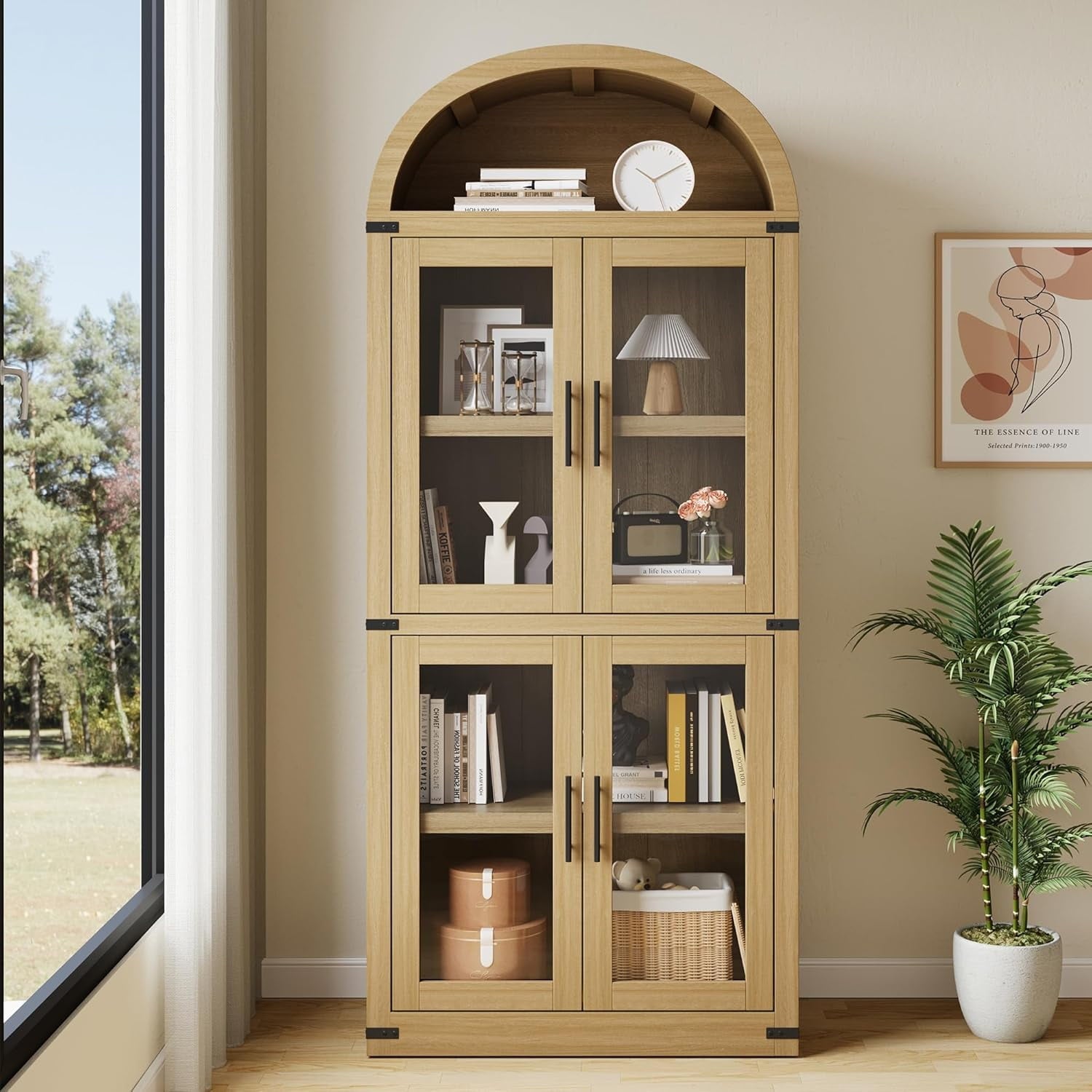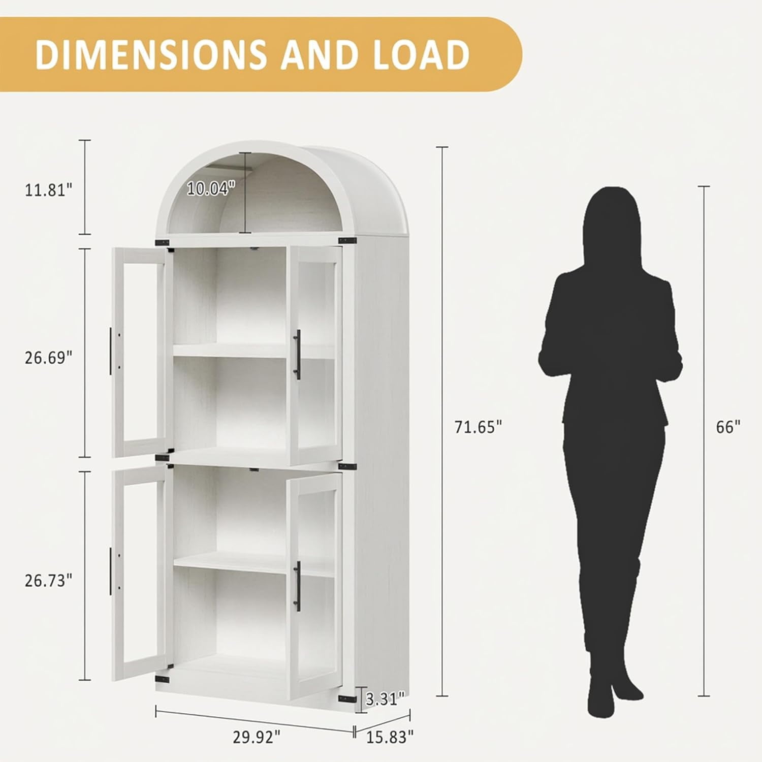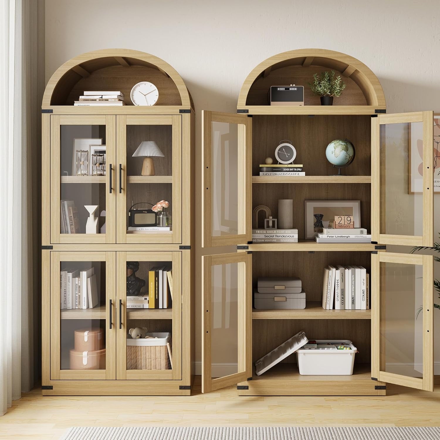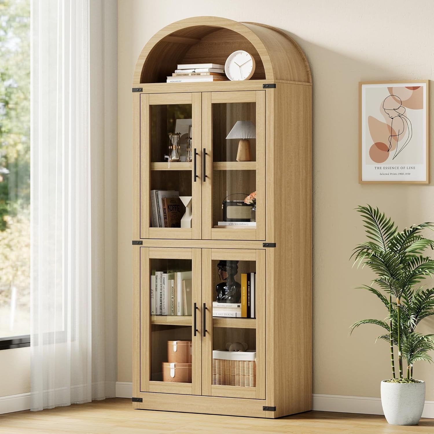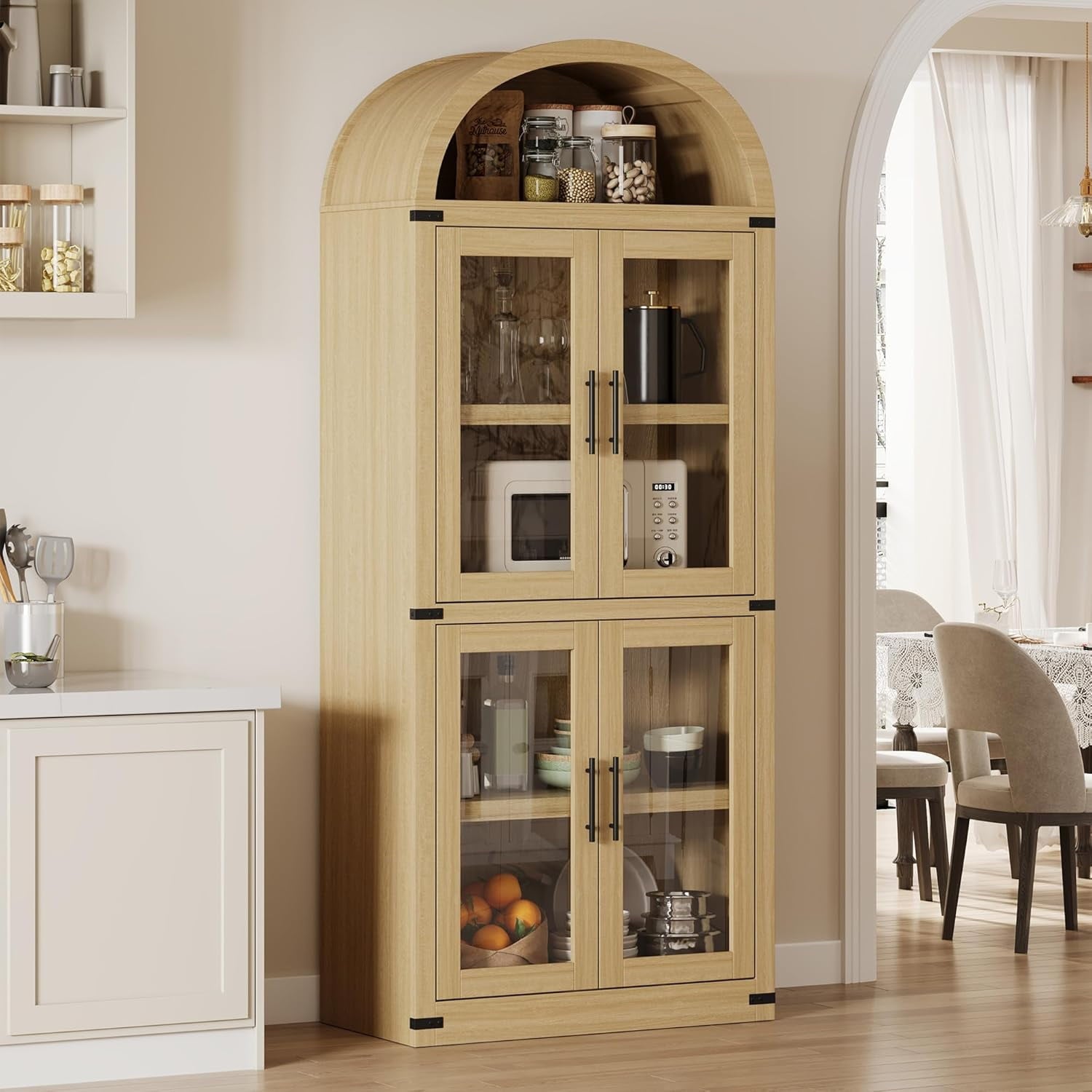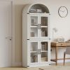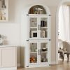 Add timeless charm and practical storage to your space with this 71.65-inch tall arched farmhouse bookcase. Made from engineered wood, this cabinet combines rustic appeal with modern function. It features both open shelving for display and closed storage with doors and metal handles to keep essentials dust-free. With a generous depth of 15.83 inches and each shelf supporting up to 60 lbs, it’s ideal for storing books, kitchenware, or decorative items. Whether used in the kitchen, living room, or office, its arched silhouette and neutral color options blend effortlessly with a variety of interiors. The cabinet also includes anti-tipping hardware for added stability and peace of mind.