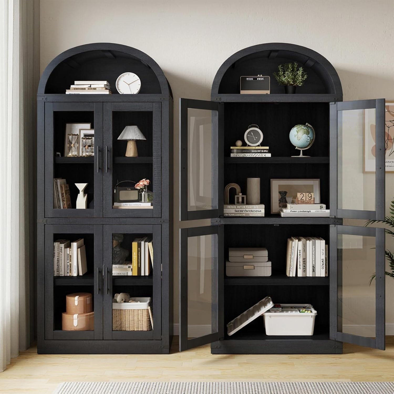 - Multi-Purpose Use: Functions as a bookshelf, kitchen pantry cabinet, or display unit for décor and essentials.