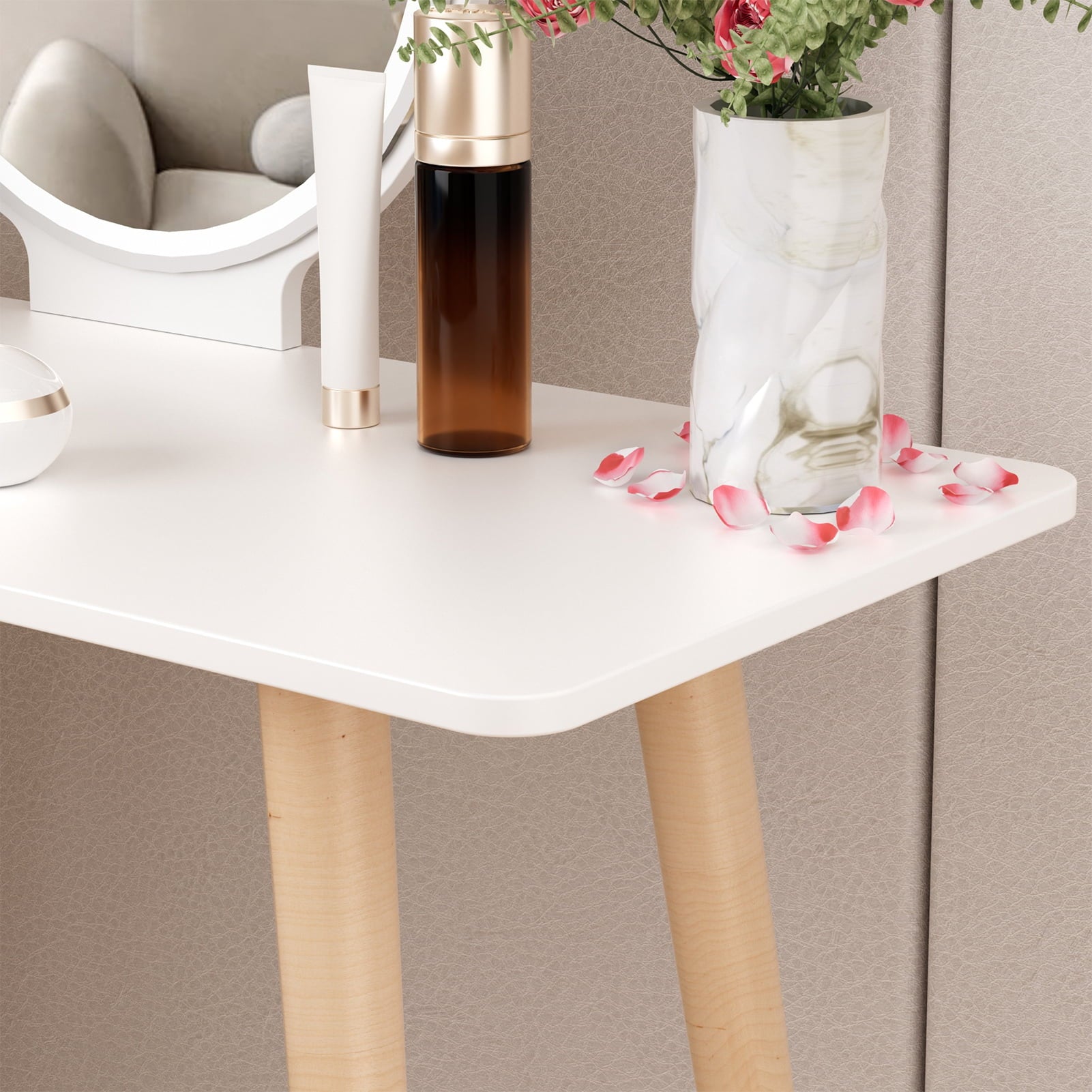 Sturdy construction: Made of eco-friendly plate-type material, its stable structure ensures the stability and sturdiness of the makeup table.