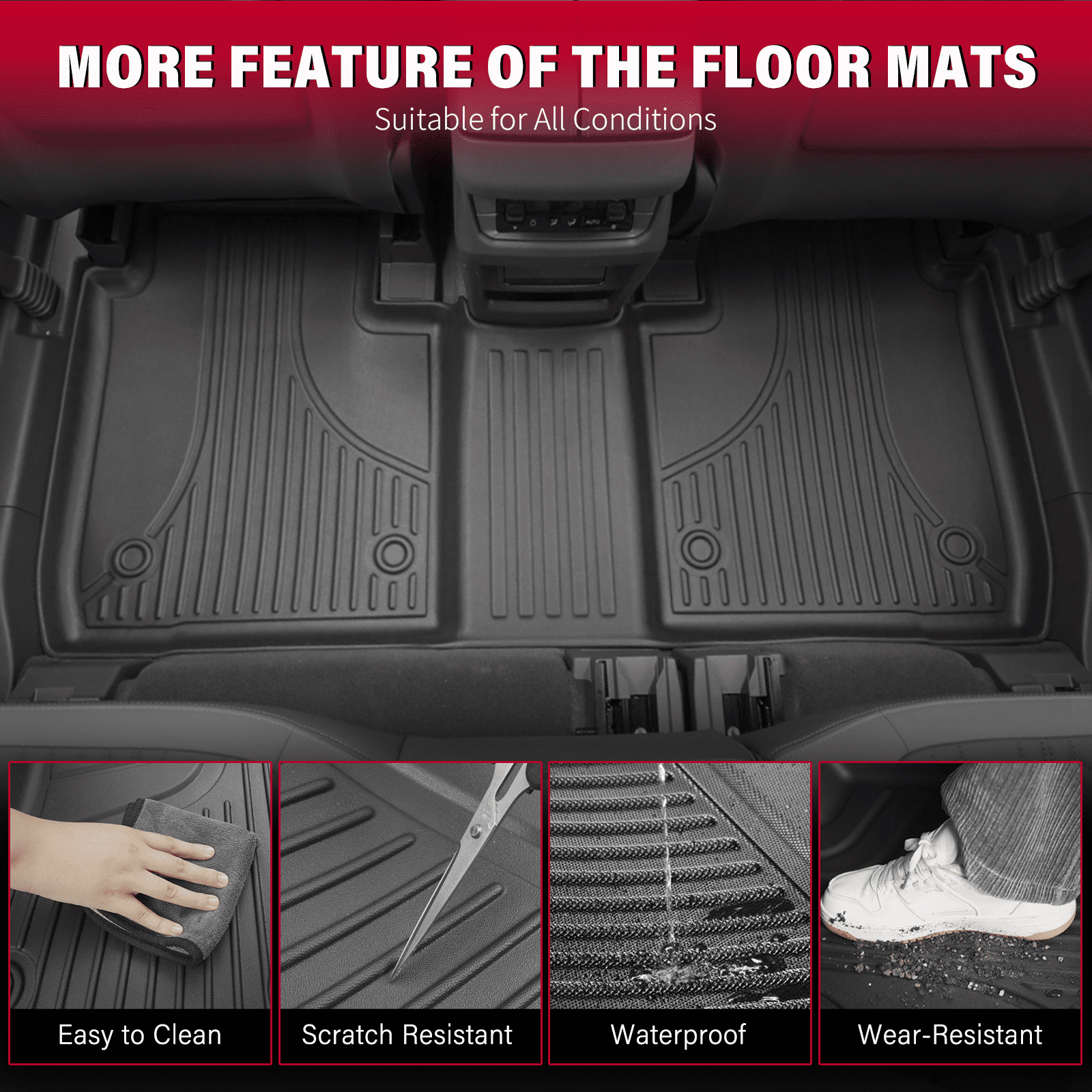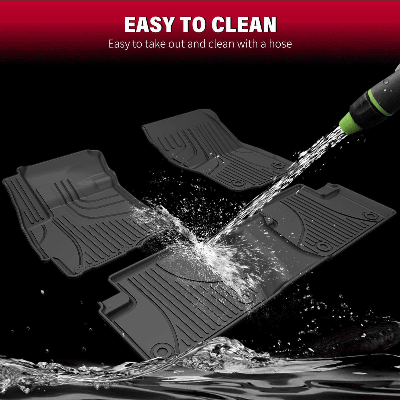 Our custom-fit floor mats will perfectly match your car. They are digitally 3D designed and laser-measured to precise cabin specifications for optimal coverage and a perfect fit. The high-quality TPE material not only provides excellent tactile feel, abrasion resistance, weather resistance, and high temperature resistance, but also features an original all-weather lining that remains tough and flexible even in extreme temperatures, making it easy to withstand the vicissitudes of everyday life. Our floor mats feature a specially designed non-slip texture that securely holds them in place without the need for additional fastening. The edges effectively prevent spills and stains on the carpet, ensuring a comfortable and safe driving experience. Plus, our car floor mats are easy to clean—simply remove the mat and rinse with a cleaning gun. Buying our floor mats is a surefire way to ensure you’ll have a great experience.