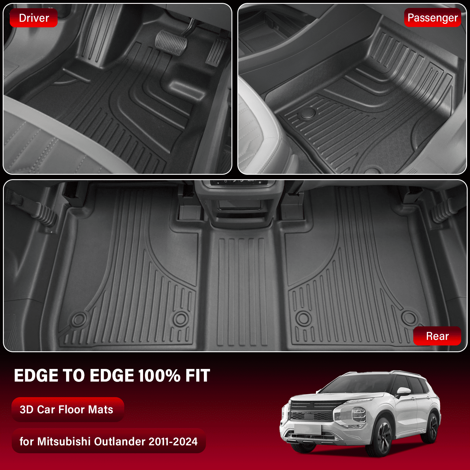 AOMSAZTO Floor Mats for Mitsubishi Outlander 2011-2024- All Weather Automotive Floor Mats - 1st & 2nd Row Full Set Rubber Floor Liners for Mitsubishi Outlander -Car Mats,Black