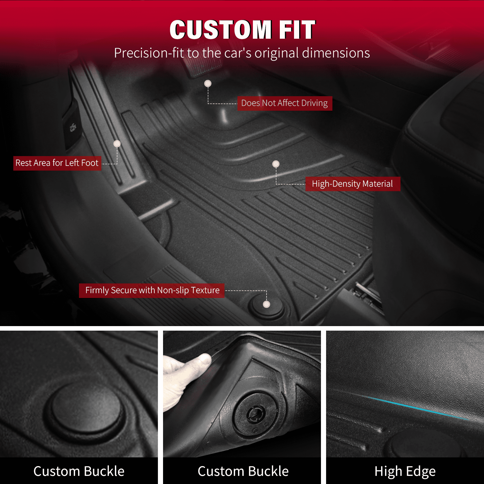• 【Easy Installation]: The car floor liners feature a custom non-slip surface and anti-slip buckles for tool-free installation. The buckles align with the original vehicle’s design, ensuring the mats stay securely in place.