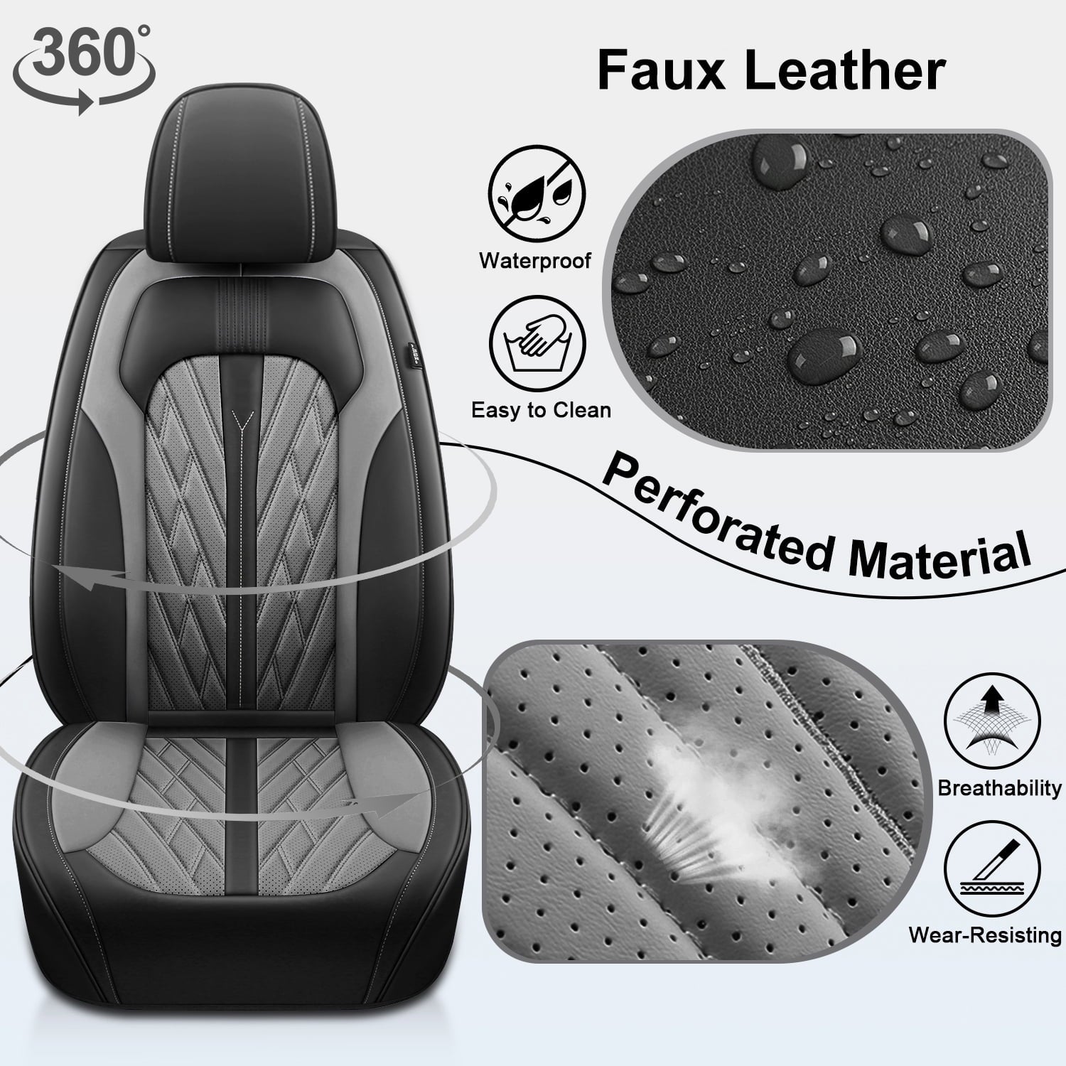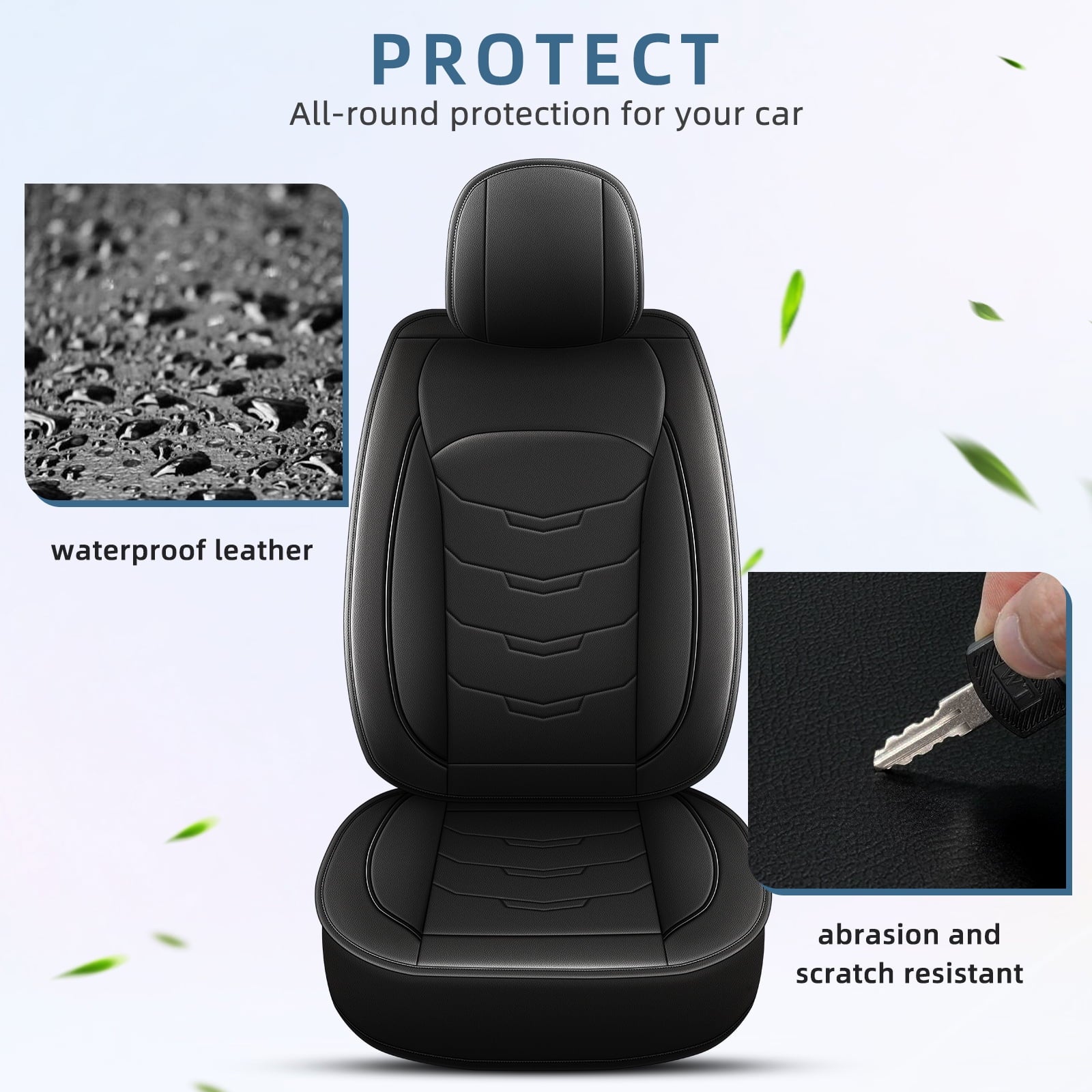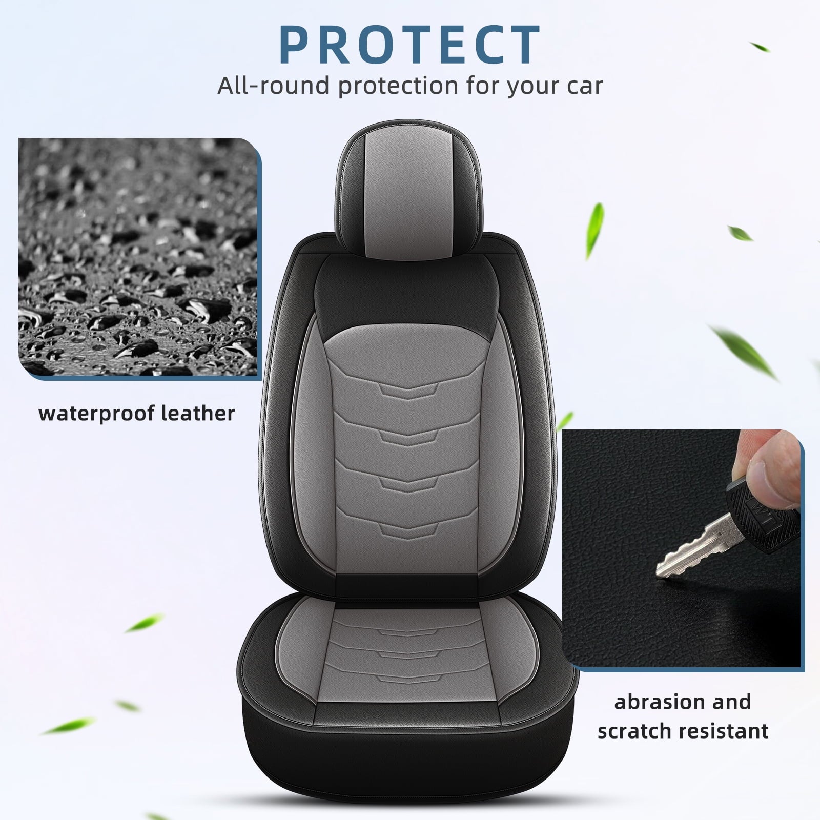 - 【Upgrade】Compared with the side half-wrapped front seat covers on the market, ours adopts a full-wrapped design, and the corners of the seat cushions also use a hemmed design to provide maximum protection for your car. And it has 4 zipper, which greatly improves the service life.