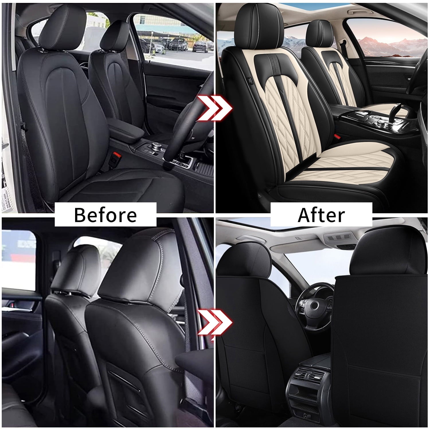 - 【High Material】Automotive seat cover set is made of high-quality waterproof leather and thickened sponge, which makes the cushion feel soft and wear-resistant, and can also keep it in good shape, and can be obtained in hot summer better driving experience, suitable for all seasons.