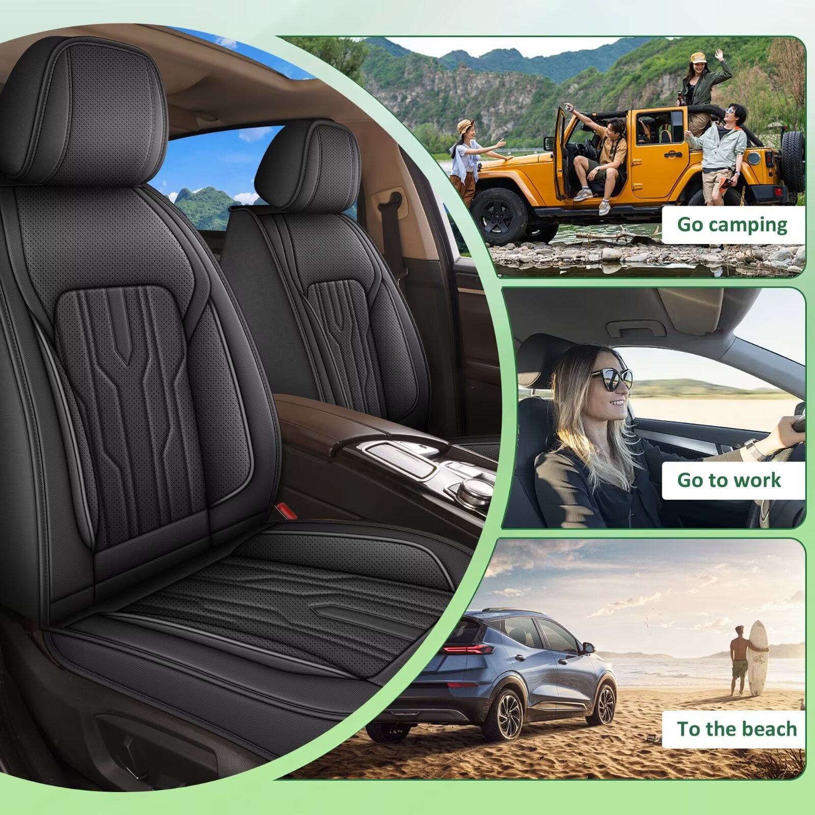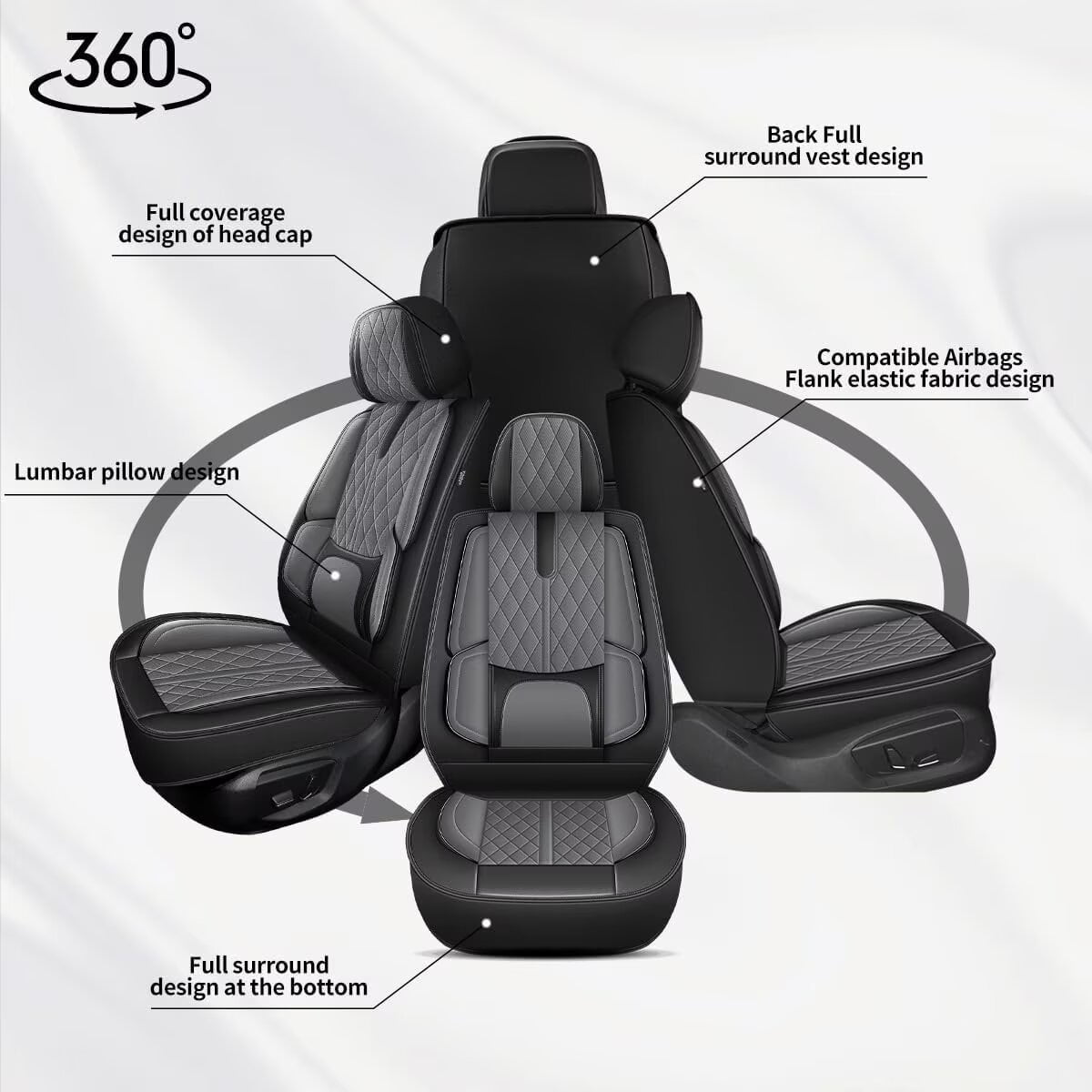 - 【Carefully Crafted Design】Equipped with a built-in lumbar support system, our seat covers provide added comfort and support during long drives. Designed to be compatible with safety airbags. Flame retardants are added to the leather so it won’t burn even in a fire.