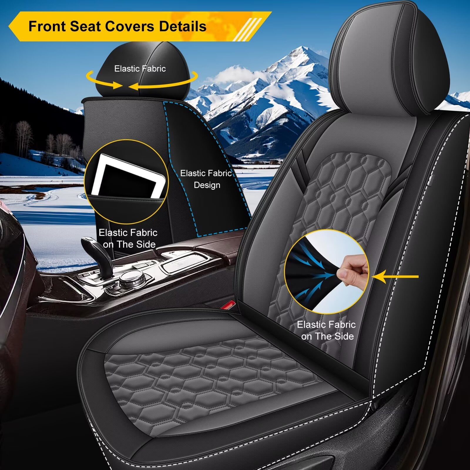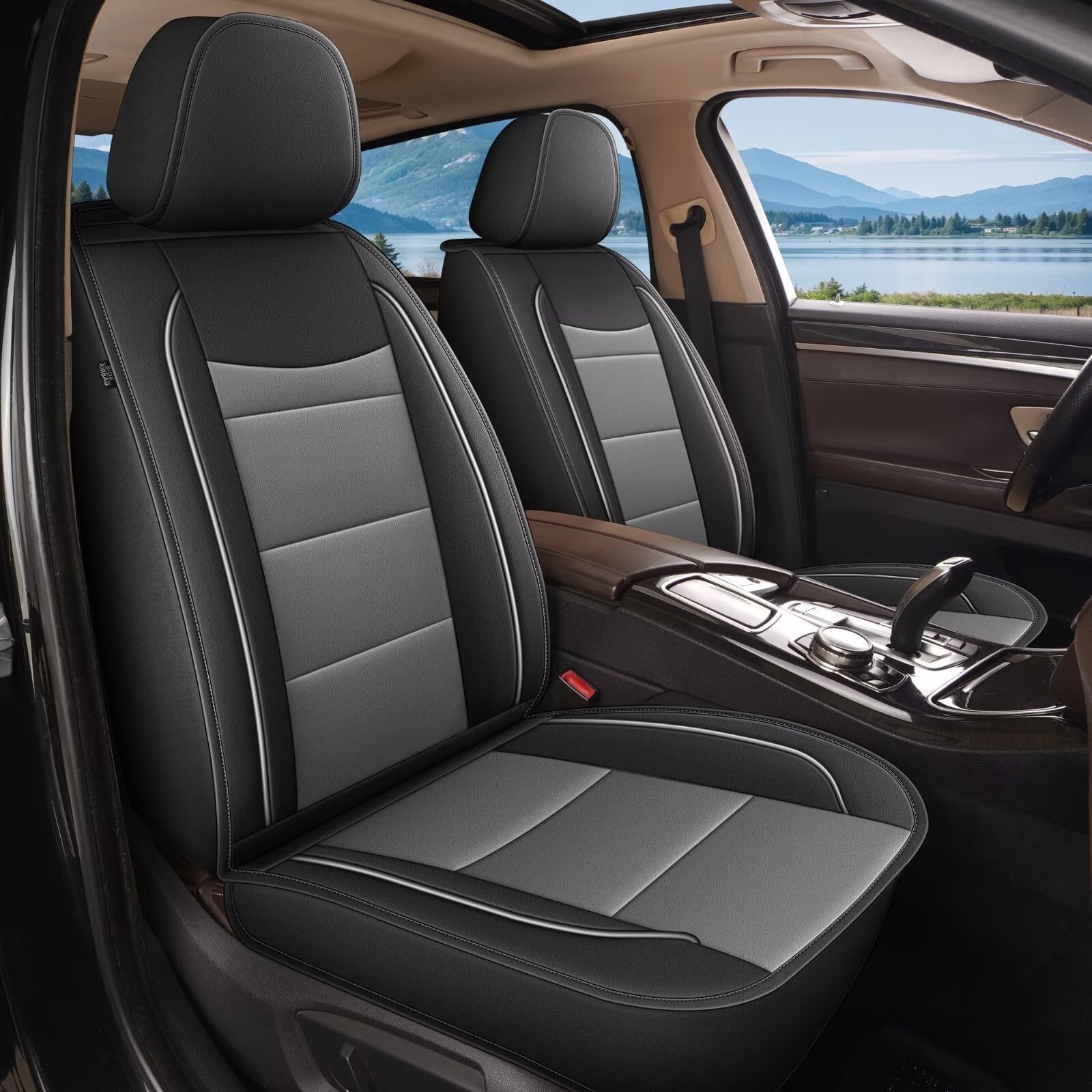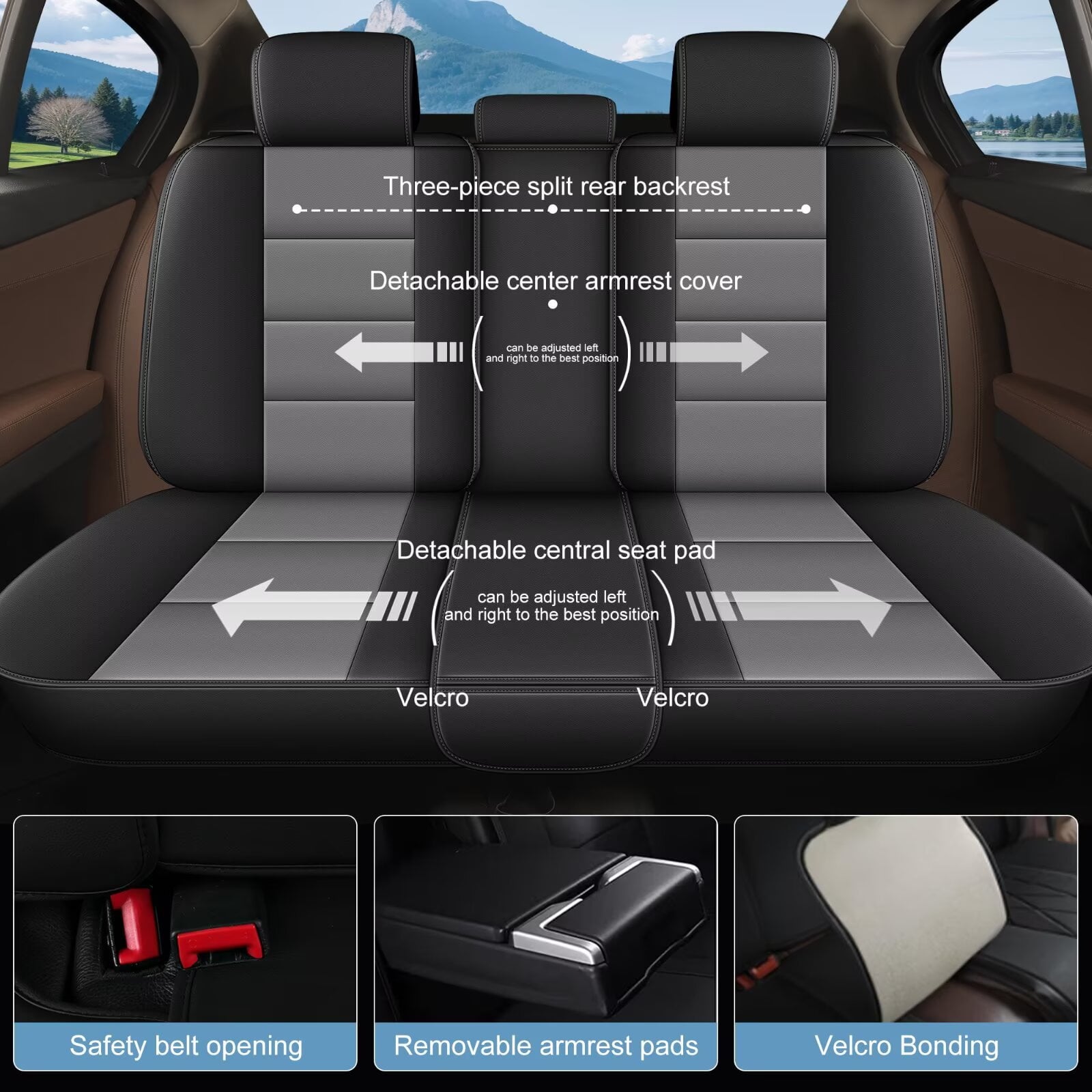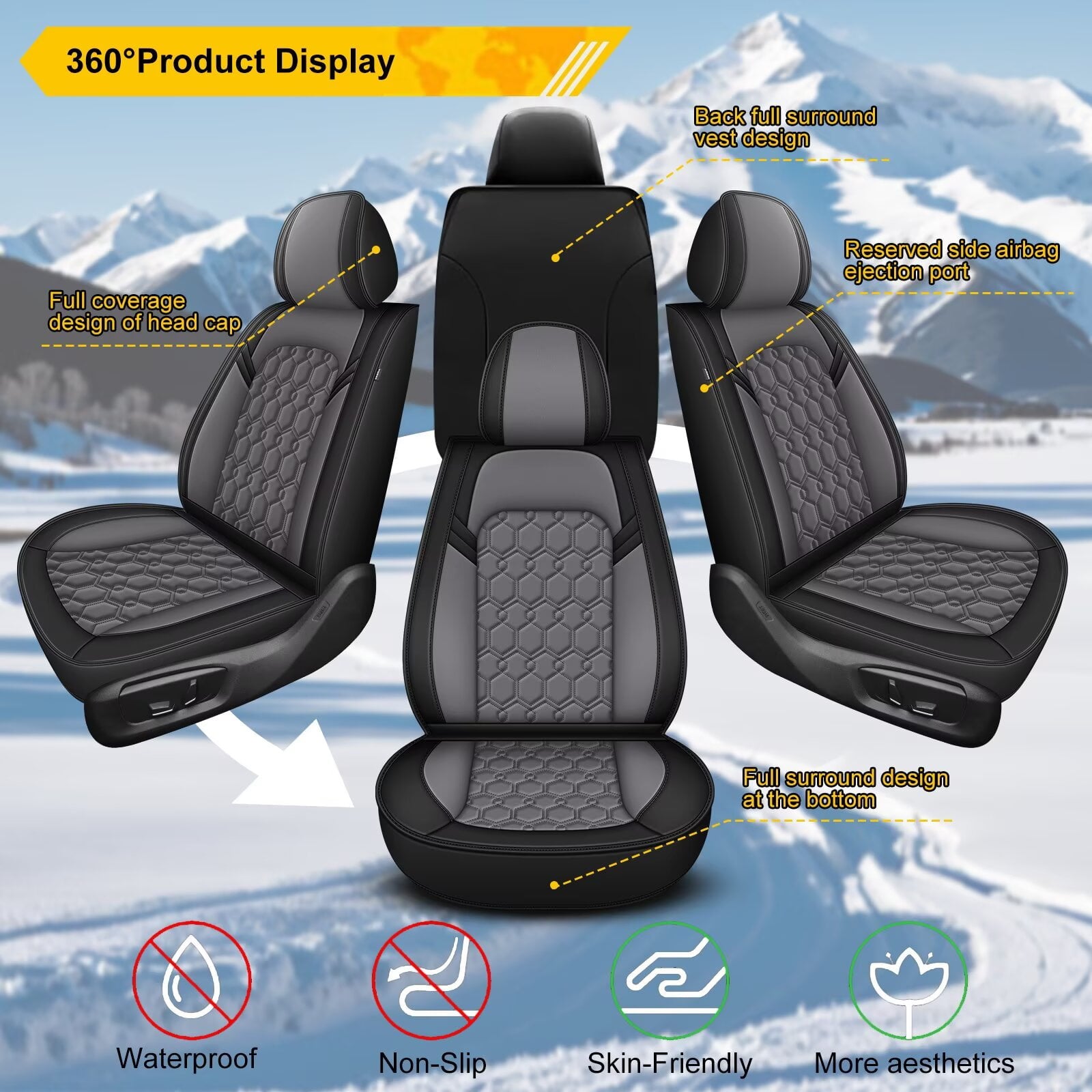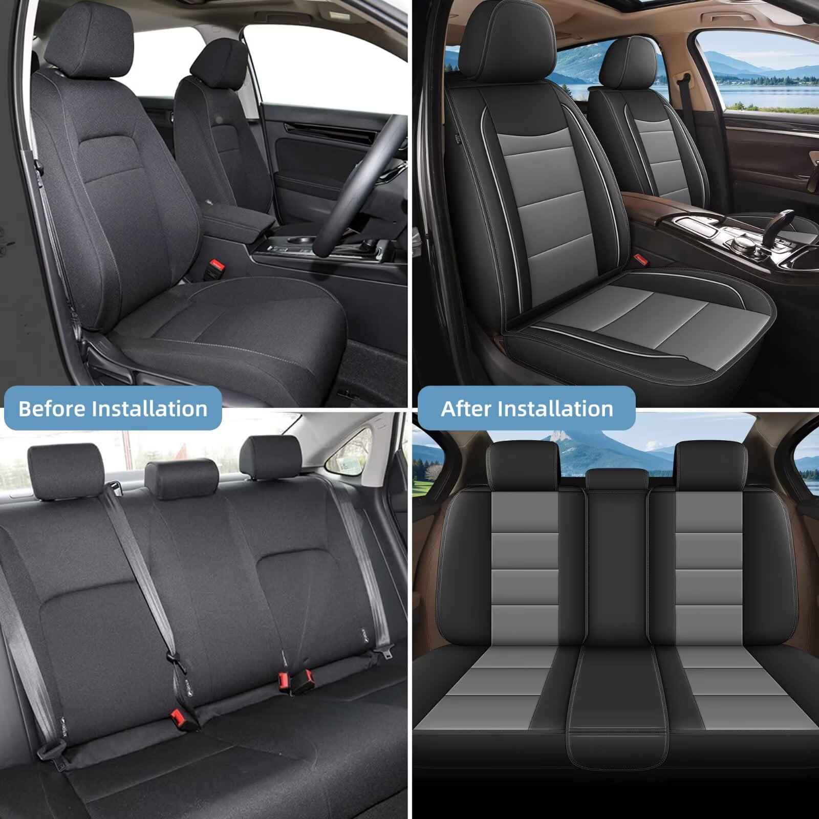 AOMSAZTO Car Seat Covers Full Set Fit for Toyota RAV4 2007-2024 2025: Waterproof Leather Automotive Seat Cushion Protector(Black + Gray)