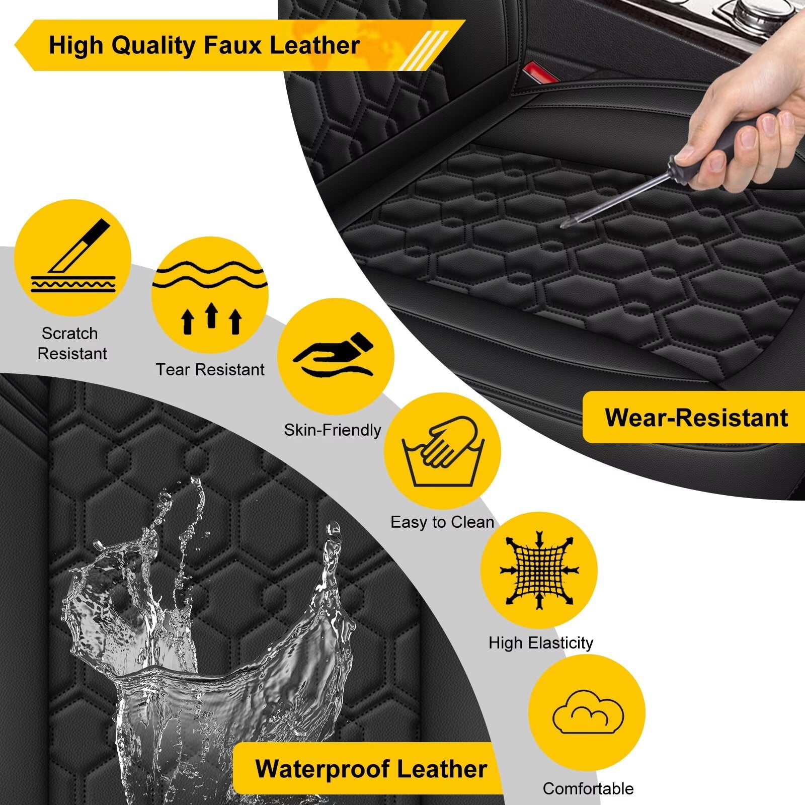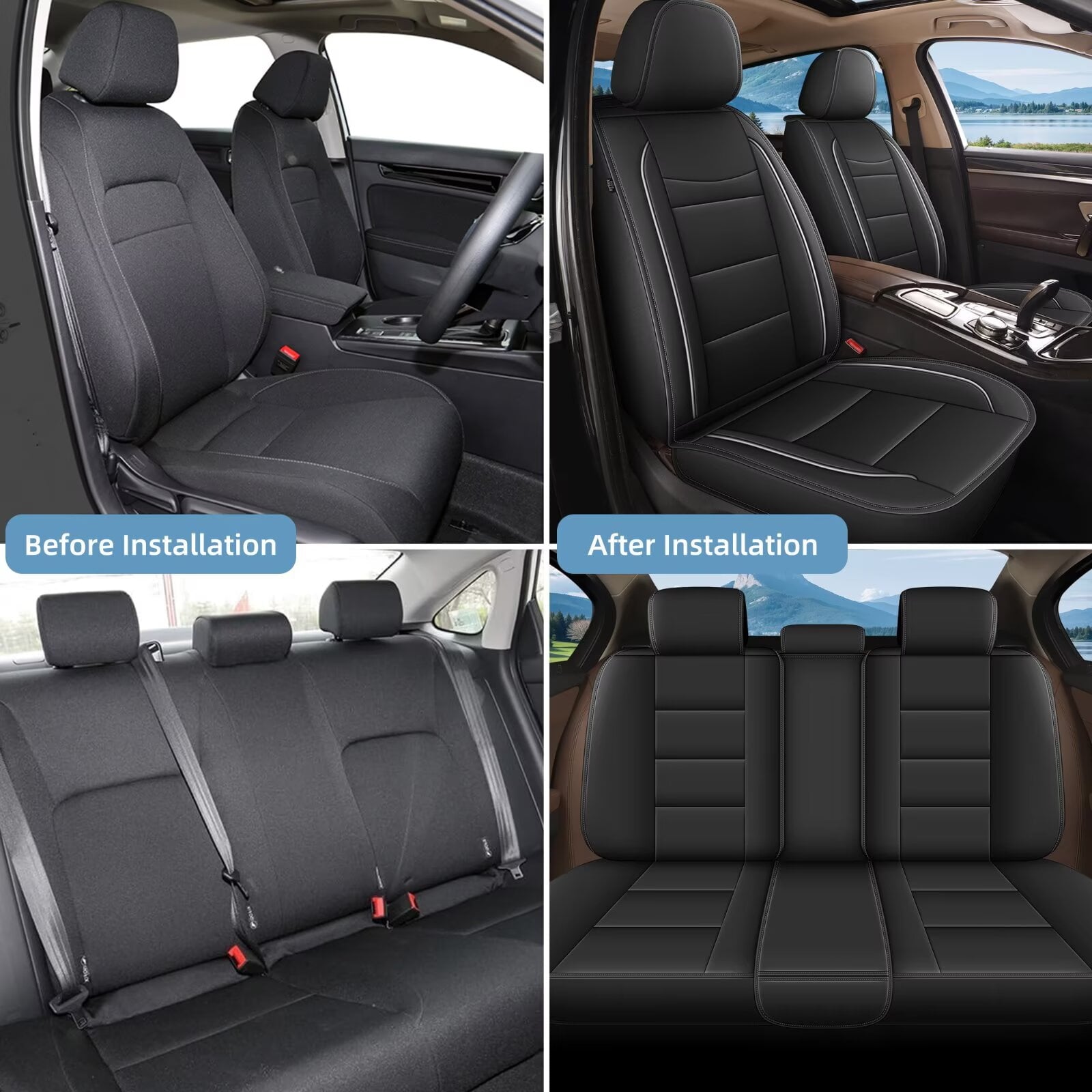• 【High-Quality Material】Made of high-quality materials and high-grade craftsmanship. Selected imitation leather, high elastic sponge, non-slip base fabric, five-layer design. Scratch-resistant leather, extending the lifespan of your car’s interior seats.