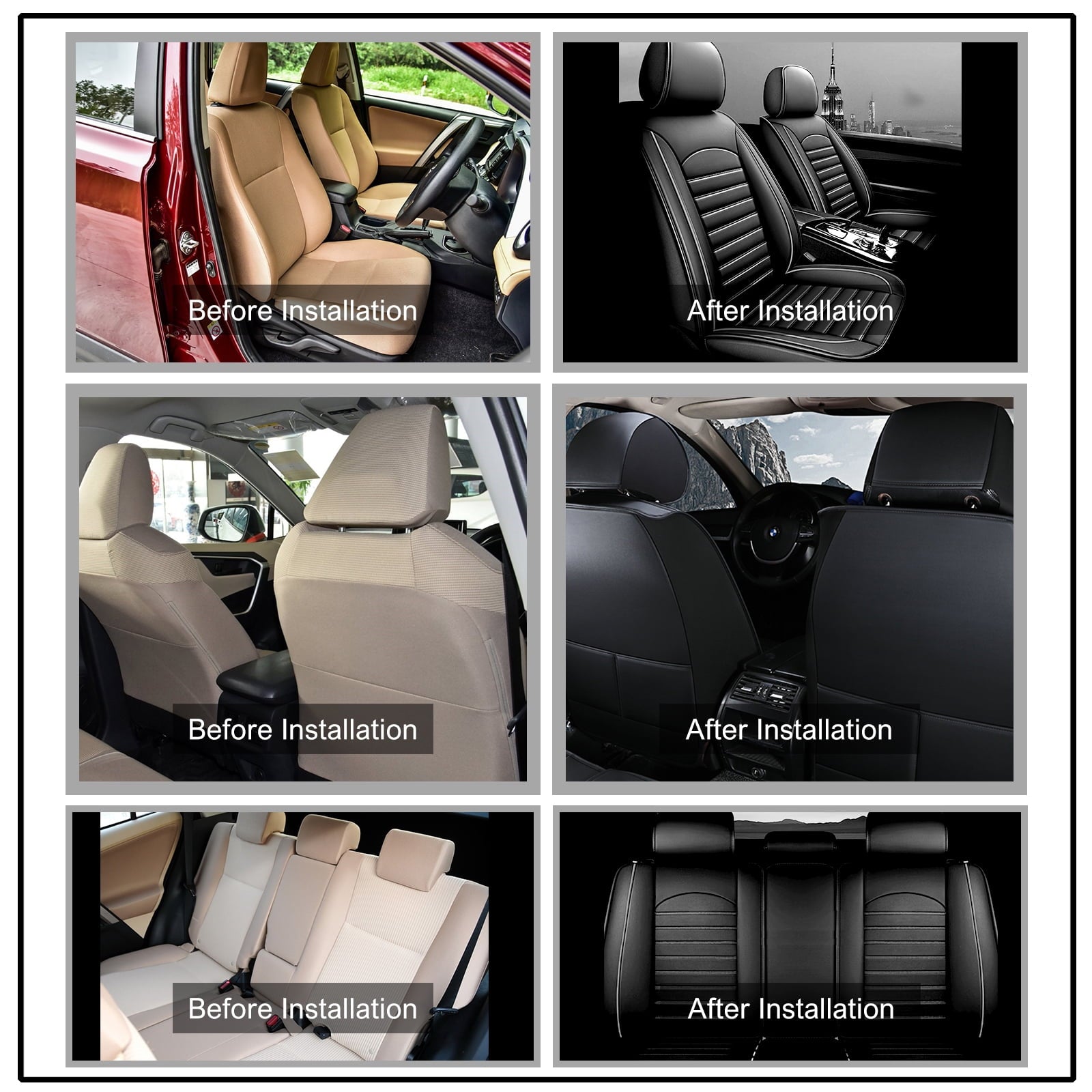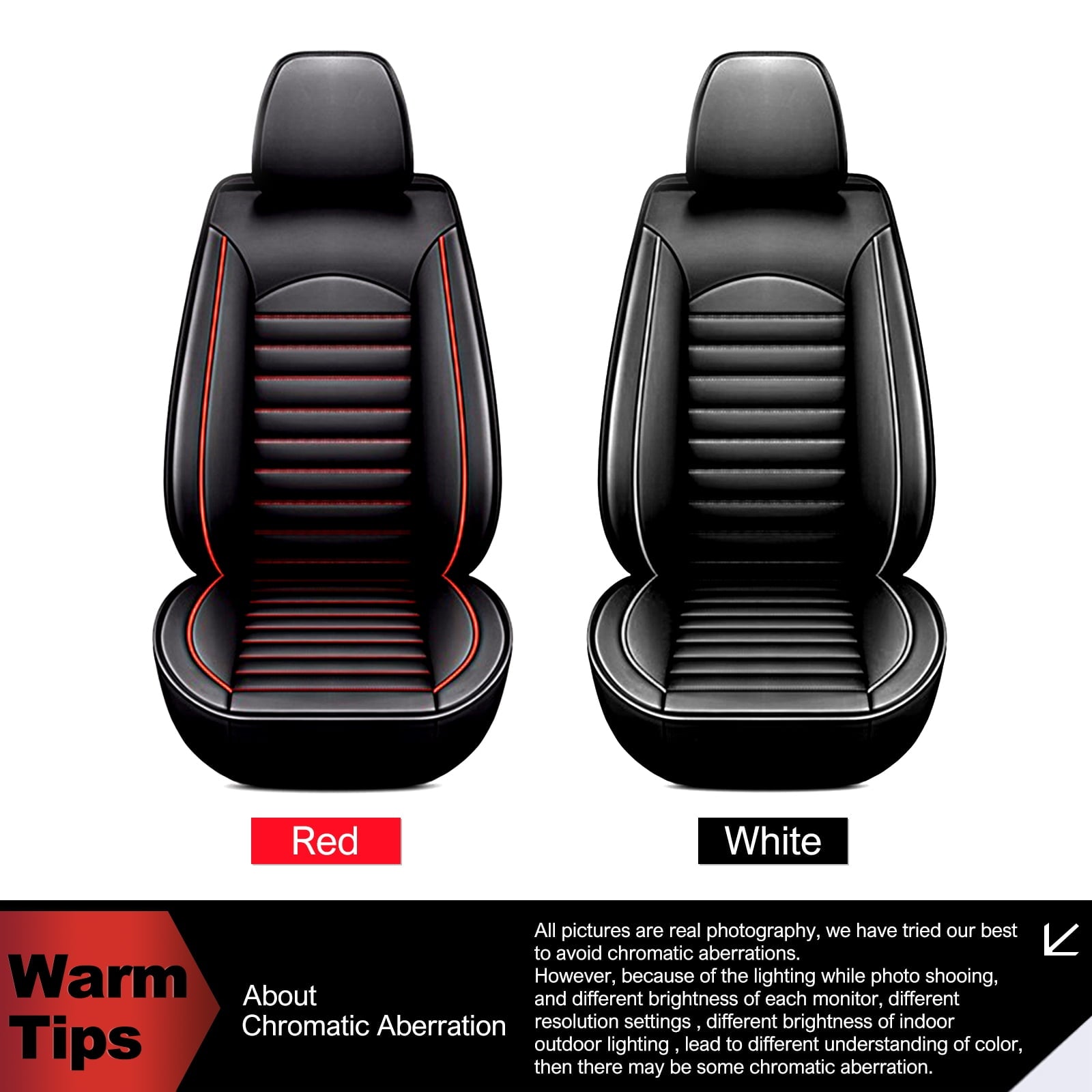 - Our seat covers are made of high-quality materials with high-quality craftsmanship. Selected faux leather, high elastic sponge, heat-laminated non-woven fabric, non-slip base fabric, five-layer design. Better material quality, better design and manufacturing, bring you a better user experience and longer life service.