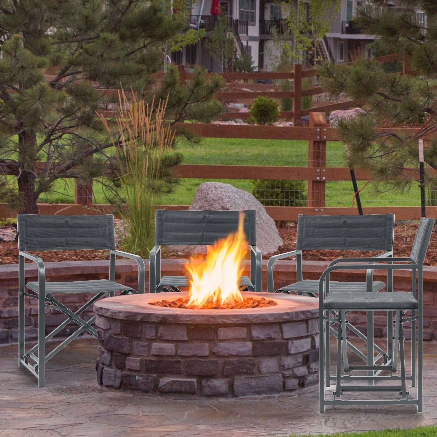 Aoodor 34" Director's Chair Set of 4, Portable Bar Height Chairs for Outdoor, Makeup Artist, or Events, White