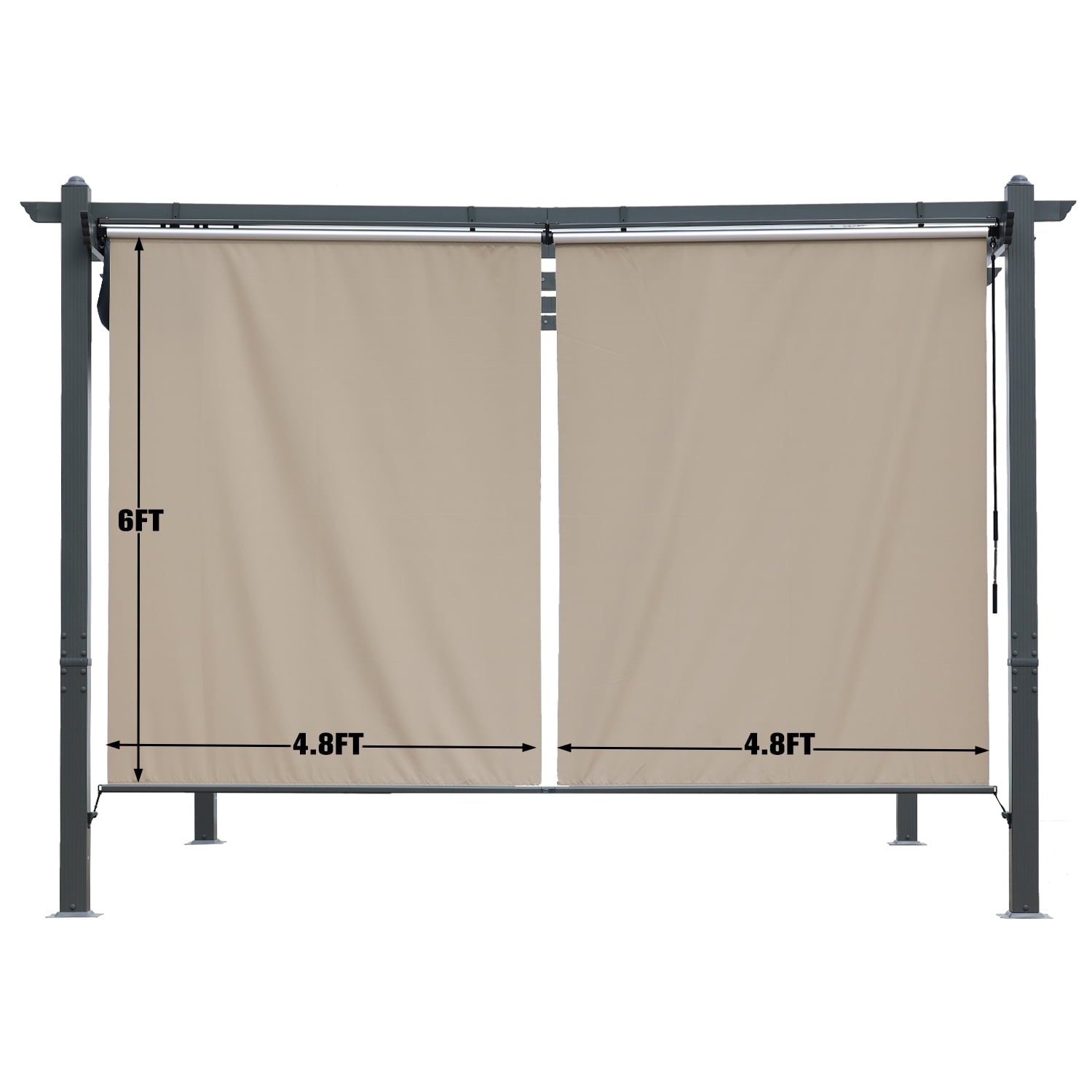 Elevate your outdoor space with Roller Shade, a set of 2 cordless aluminum pergola curtains measuring 4.8′ x 6′. Crafted with high-quality polyester fabric, these curtains provide water resistance and UV protection, ensuring durability and comfort in any weather.