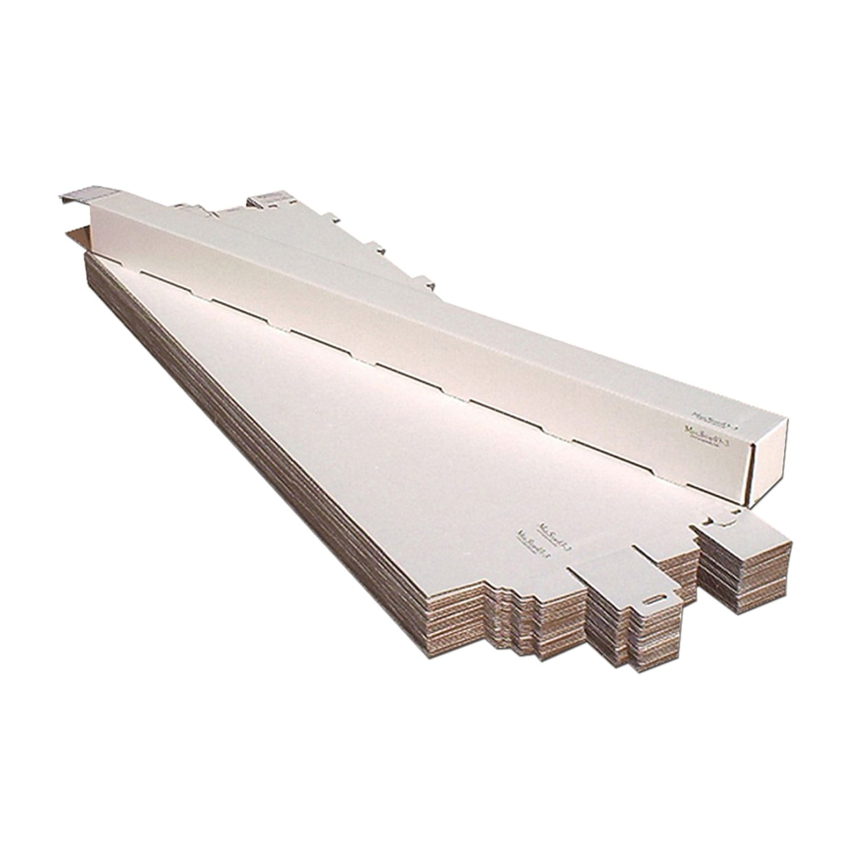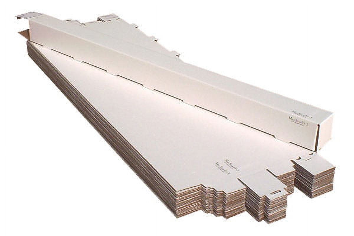 By Advanced Organizing Systems, Inc. The economical solution for mailing or storing documents, prints, graphics, art, maps, film and other items. Attractive durable light weight white corrugated cardboard saves mailing cost. Design for quick assembly with self locking closure and stackable with convenient label areas. Size is 3x3x43 and sold 25 per package. Made in the USA