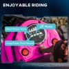 Turn your teens’ usual outdoor outings into thrilling adventures with our motorized bike. Designed for ages 13 and up, this powerful 24V motorbike offers variable speeds between 6.2 and 14.9 mph for up to 30 minutes of non-stop fun. With a strong steel frame, shock-absorbing wheels, and manual throttle, this bike is great for tackling any terrain. So, blast the tunes and get ready to make memories that will last a lifetime.