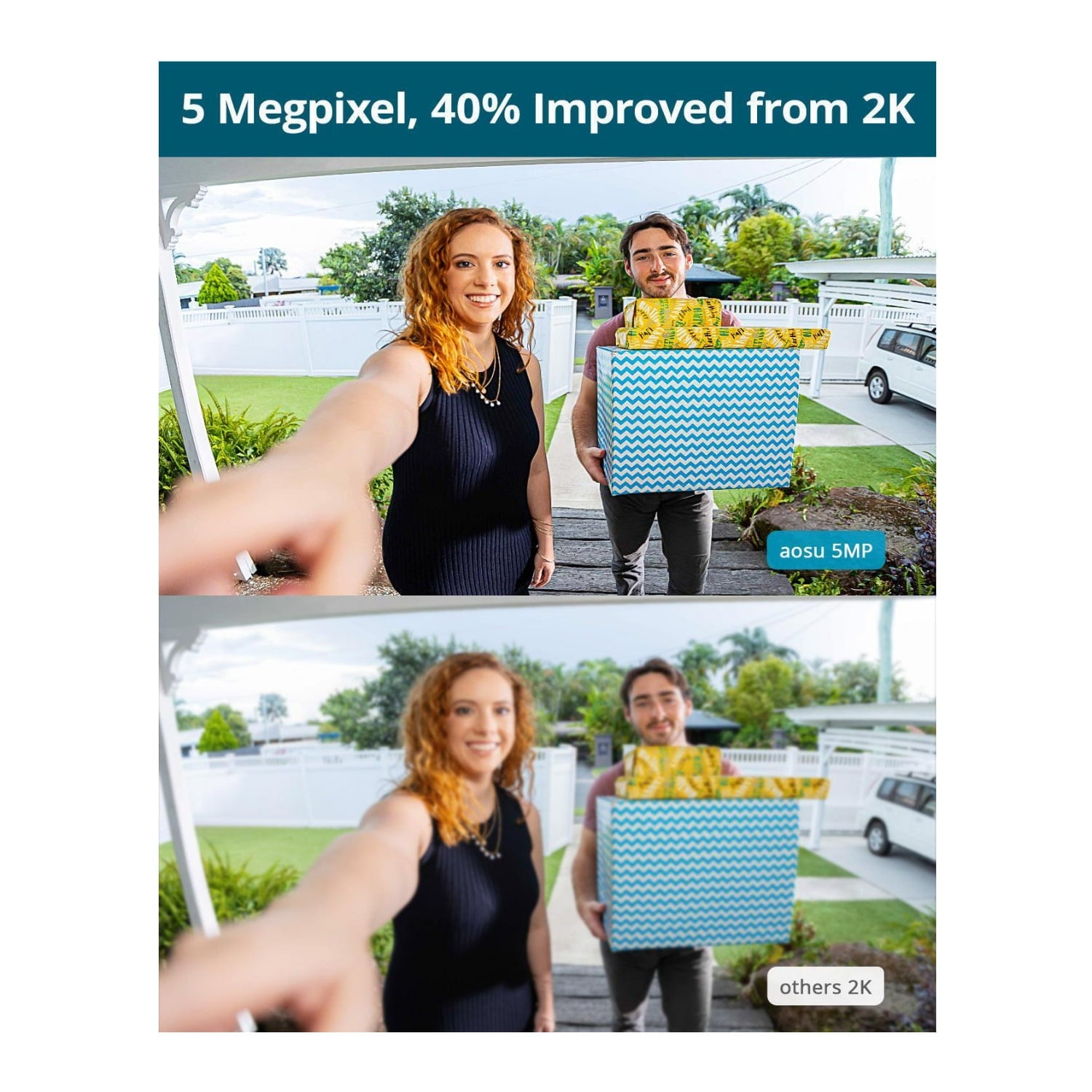 Make your home a smart home with aosu wireless doorbell with camera. See a person from head to toe or a package on the ground with 166° view. Get a clearer picture with detailed 3K, 5.0-MP DWDR video ensuring you can see even in low light or bright conditions. It connects directly to Wi-Fi without the clutter of extra gear – ideal for new home installation as well as retro fitting. The aosu doorbell is easy to install and is weather-resistant so you’ll always have a great camera view, year-round. Know who’s there, even in the dark with night vision. Never miss a moment with the smart door sensor to see what triggered a motion event before it happened because the video doorbell captures video prior to every motion-triggered video recording so you don’t miss out. Receive a video call to your phone to hear and speak to visitors at your door with clear, 2-way audio or respond with pre-recorded quick-reply messages when you are busy. Receive notifications for people, vehicles, and packages and take quicker action like sound the siren, call a friend, or dial emergency services. Ward off unwanted guests by triggering the siren automatically or manually from the aosu app. Pair with select Alexa-enabled devices to enable announcements and 2-way talk for convenient in-home monitoring. And, you’ll enjoy a half year of surveillance from just 1 charge!