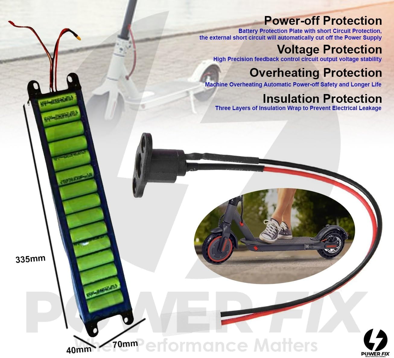 - [ Size Confirmation ]: Measuring 335x70x40 mm, this battery fits perfectly in AOVO Pro M365, ES60, and EES80 models. Always confirm the size to ensure a snug and secure fit for smooth installation and optimal performance.
