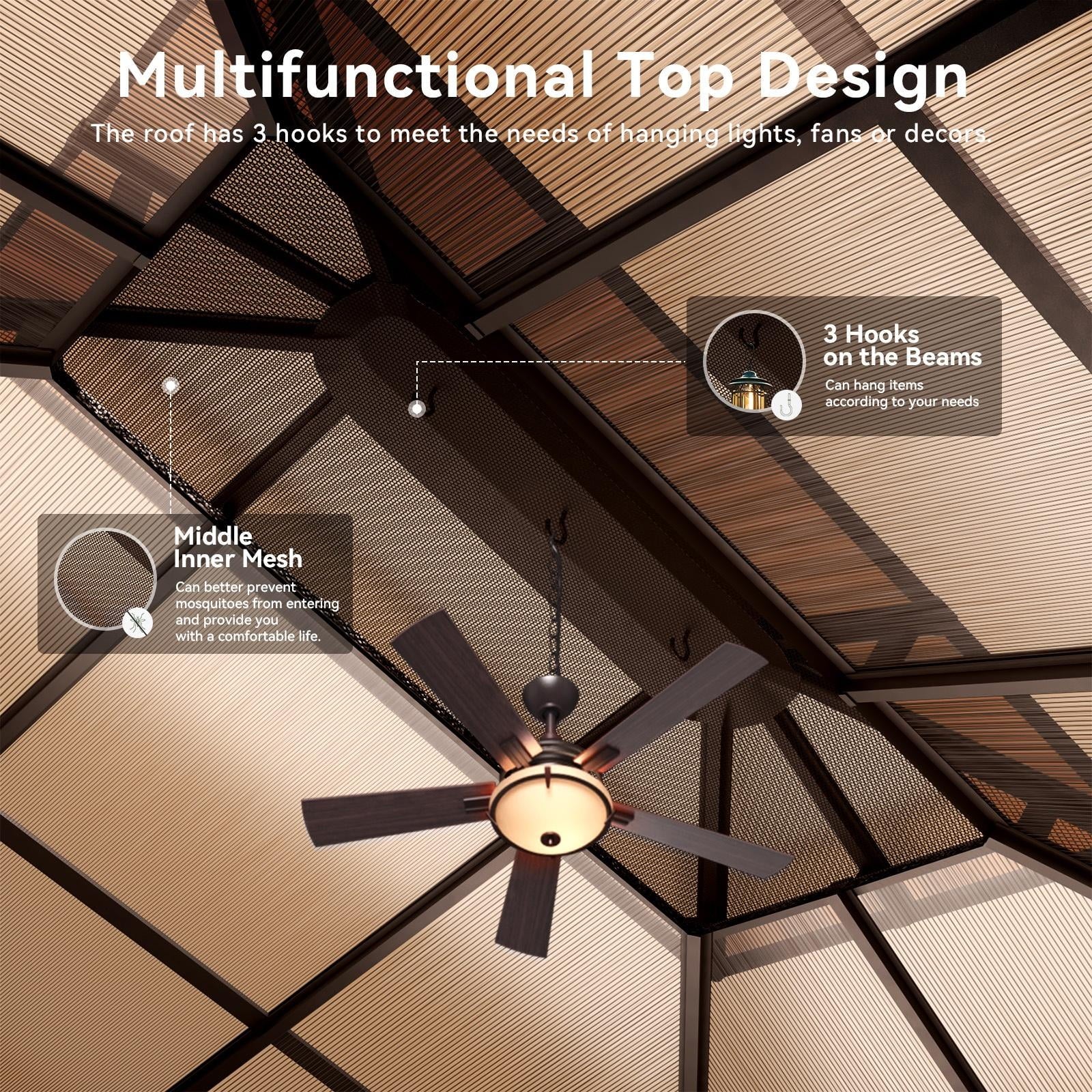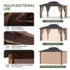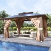 Aoxun 10 ft. x 12 ft. Hardtop Gazebo Polycarbonate Roof Aluminum Frame W/Curtain and Netting, Brown