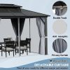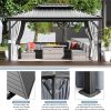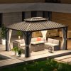 The patio hardtop gazebo is a perfect choice for those who love to relax and enjoy gatherings in outdoor. The rust-resistant aluminum frame guarantees durability and long-lasting performance without any deformation. Its galvanized steel roof provides UV protection, shielding you from harsh weather conditions while allowing for proper air circulation. Equipped with breathable mosquito netting and curtains, this gazebo not only keeps pesky insects out but also enhances airflow and offers privacy. Designed with convenience in mind, the gazebo features built-in hooks for hanging lights and fans, allowing you to create a sophisticated ambiance. With its spacious size, it can comfortably accommodate multiple people without feel stuffy, making it ideal for gatherings for hosting a party or enjoying a peaceful afternoon outdoors, it is a perfect addition to your outdoor lifestyle. Transform your outdoor space into a haven of relaxation and entertainment with the top-of-the-line gazebo. You can be relaxing with the choice in your favorite new outdoor living space for years to come.