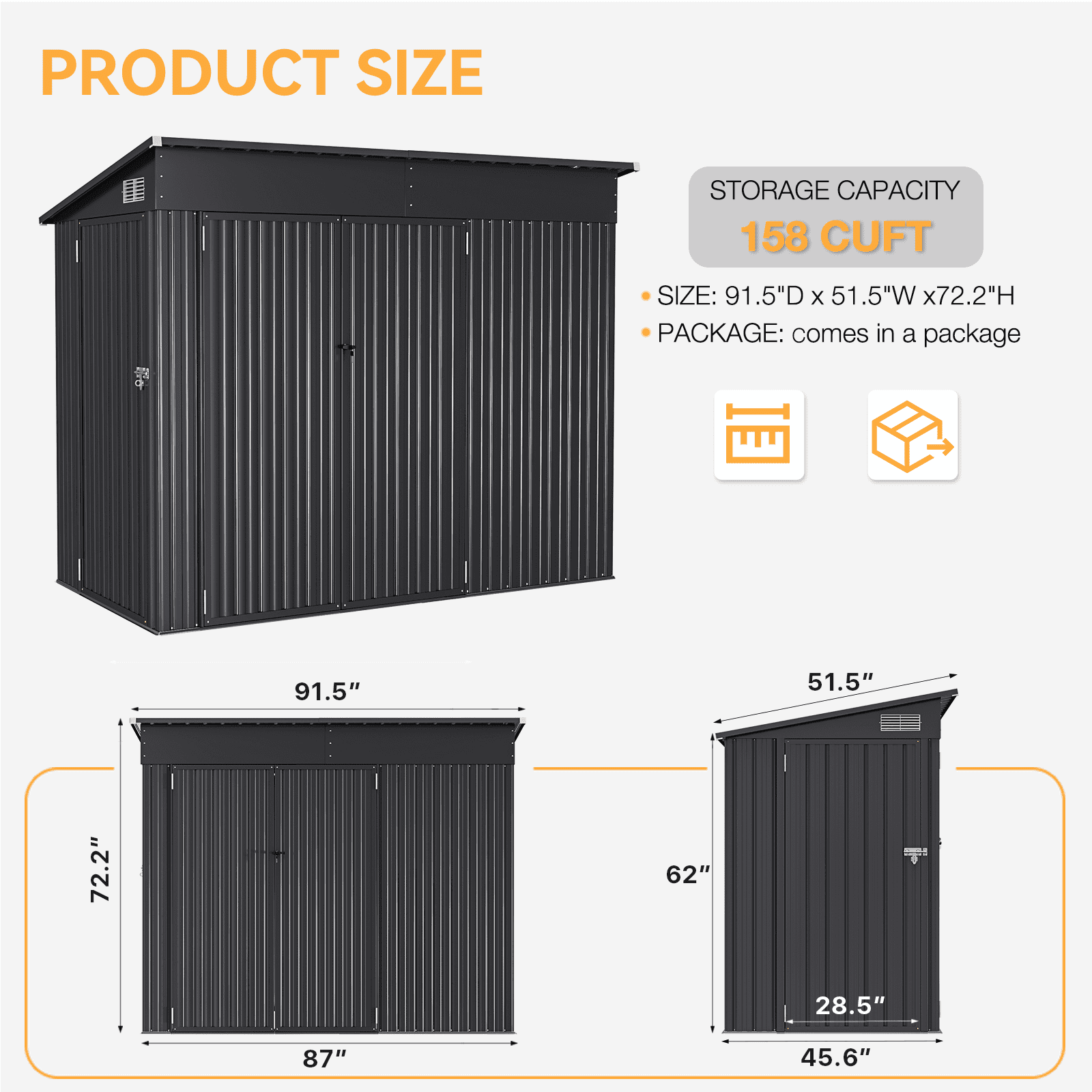 - 【Unique Design and Slopped Roof】Black is a timeless color that doesn’t go out of style easily, making the shed a reliable and long-lasting choice for various applications. Besides, the outdoor shed has a sloped roof that can better drain water and prevent rain from accumulating.