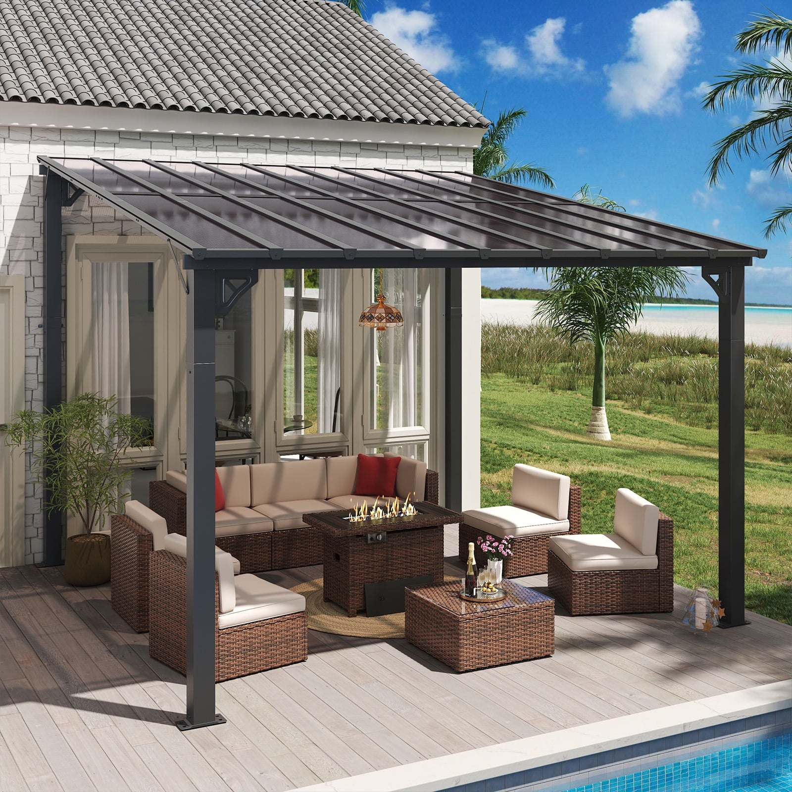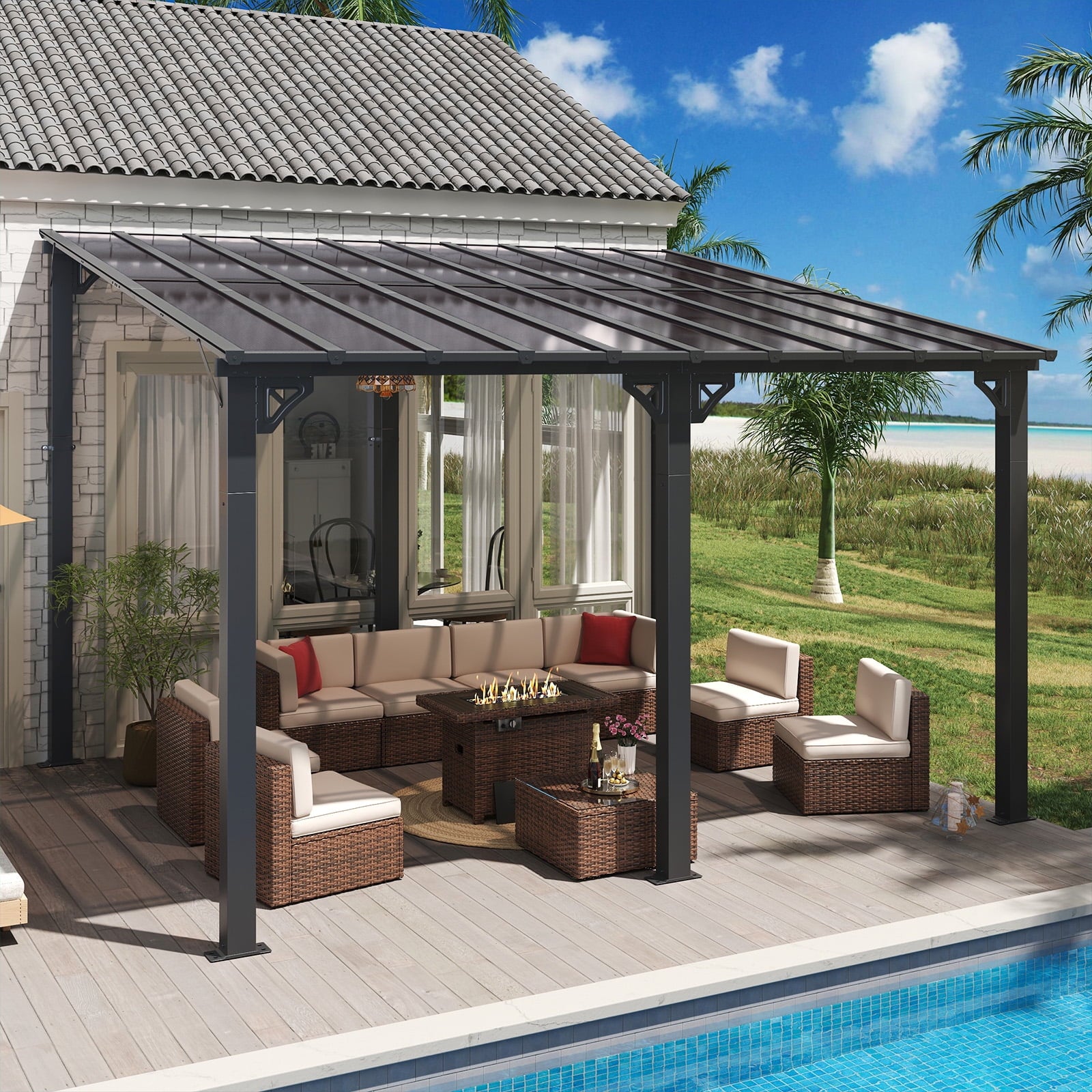 • Practical and Versatile:This pergola is ideal for multiple purposes, such as near a pool, hot tub, outdoor dining area, or used as as an entertainment space. It can also be used as a grill gazebo, under the shed to shelter your grill. It can be also adored with string lights, hanging plants, or outdoor furniture to further enhance the ambiance