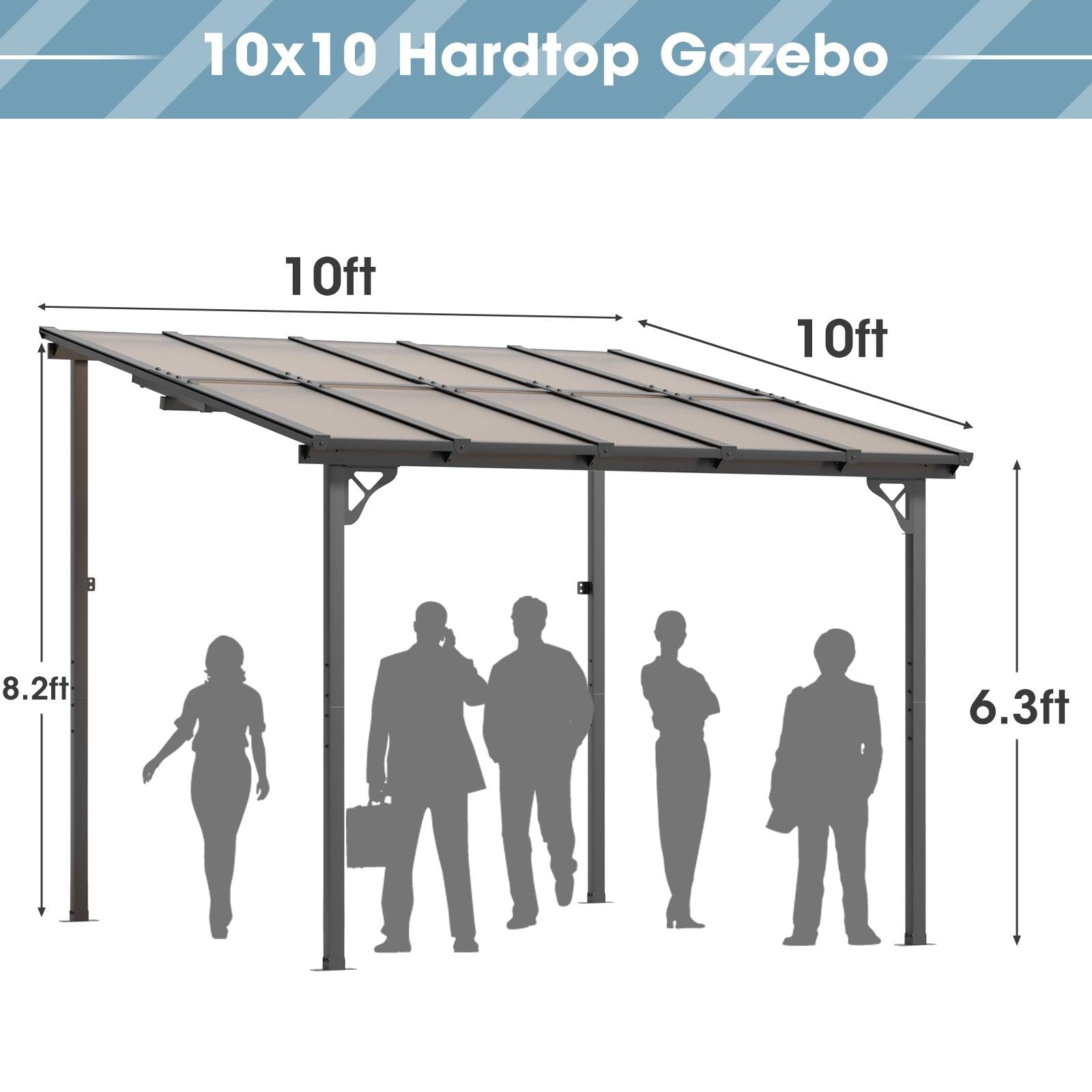 Aoxun 8' x 5' Gazebo for Patio, Gazebo Pergola with Sloped Roof, Grill Gazebo Large Wall-Mounted Heavy Duty Awnings, for Backyard, Deck, Patio