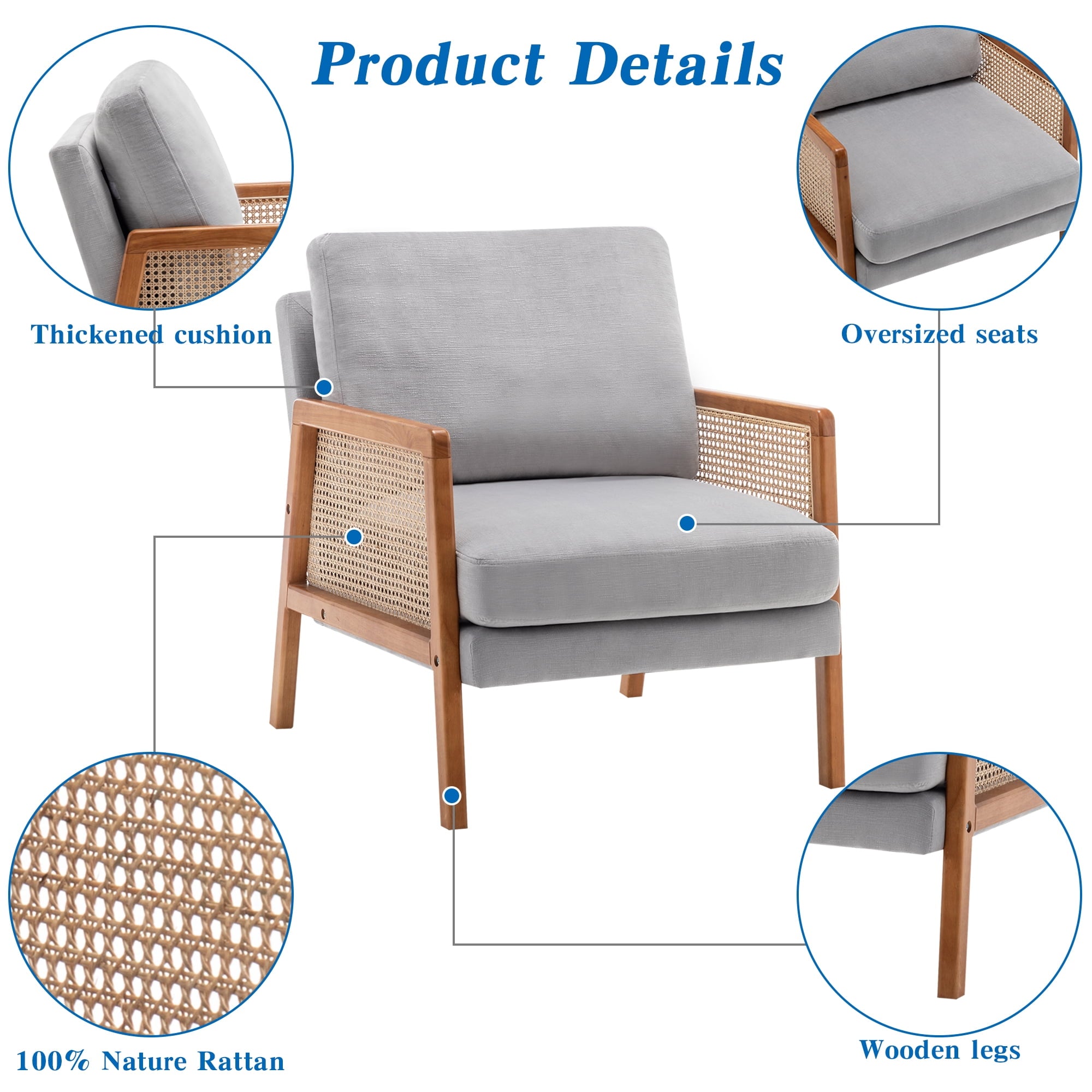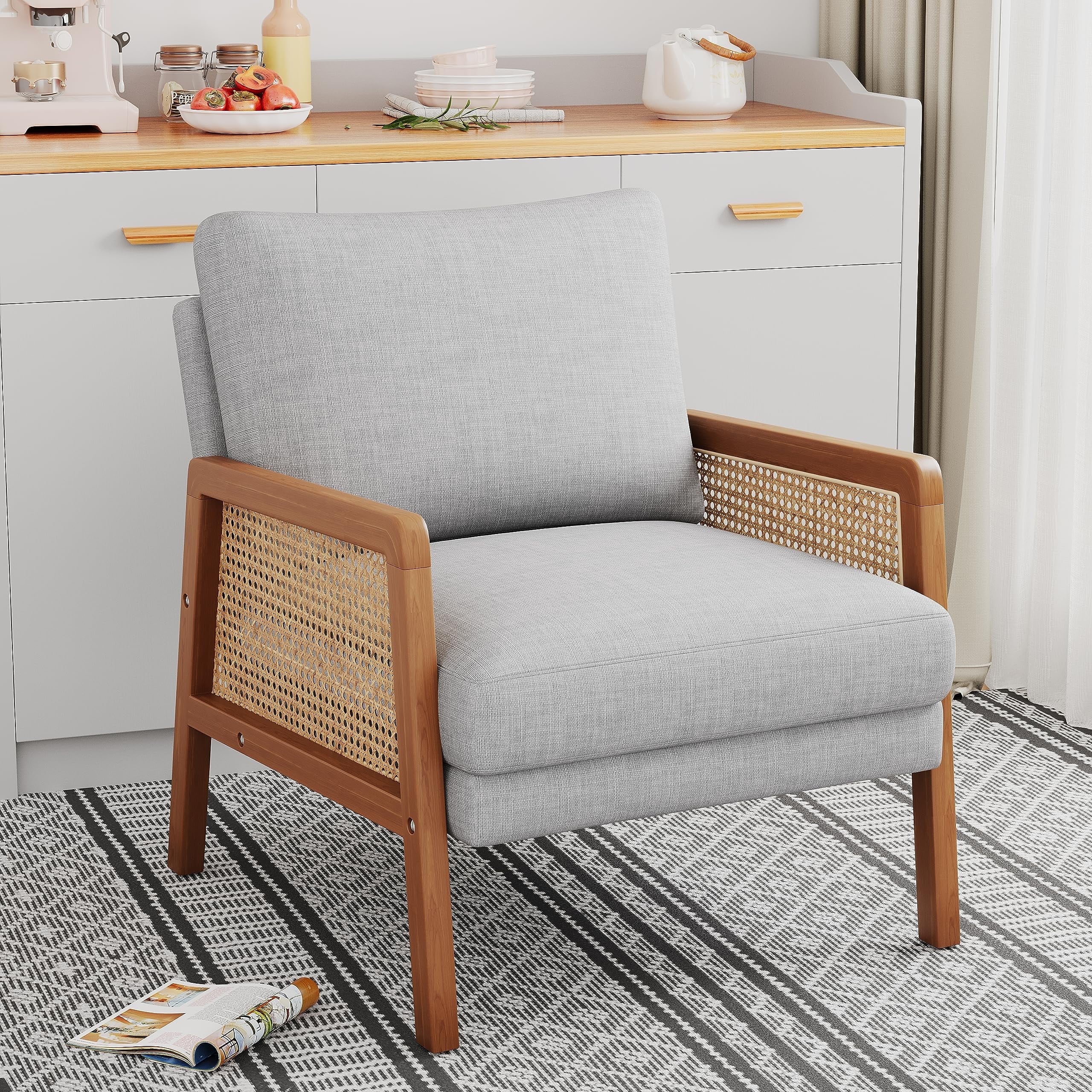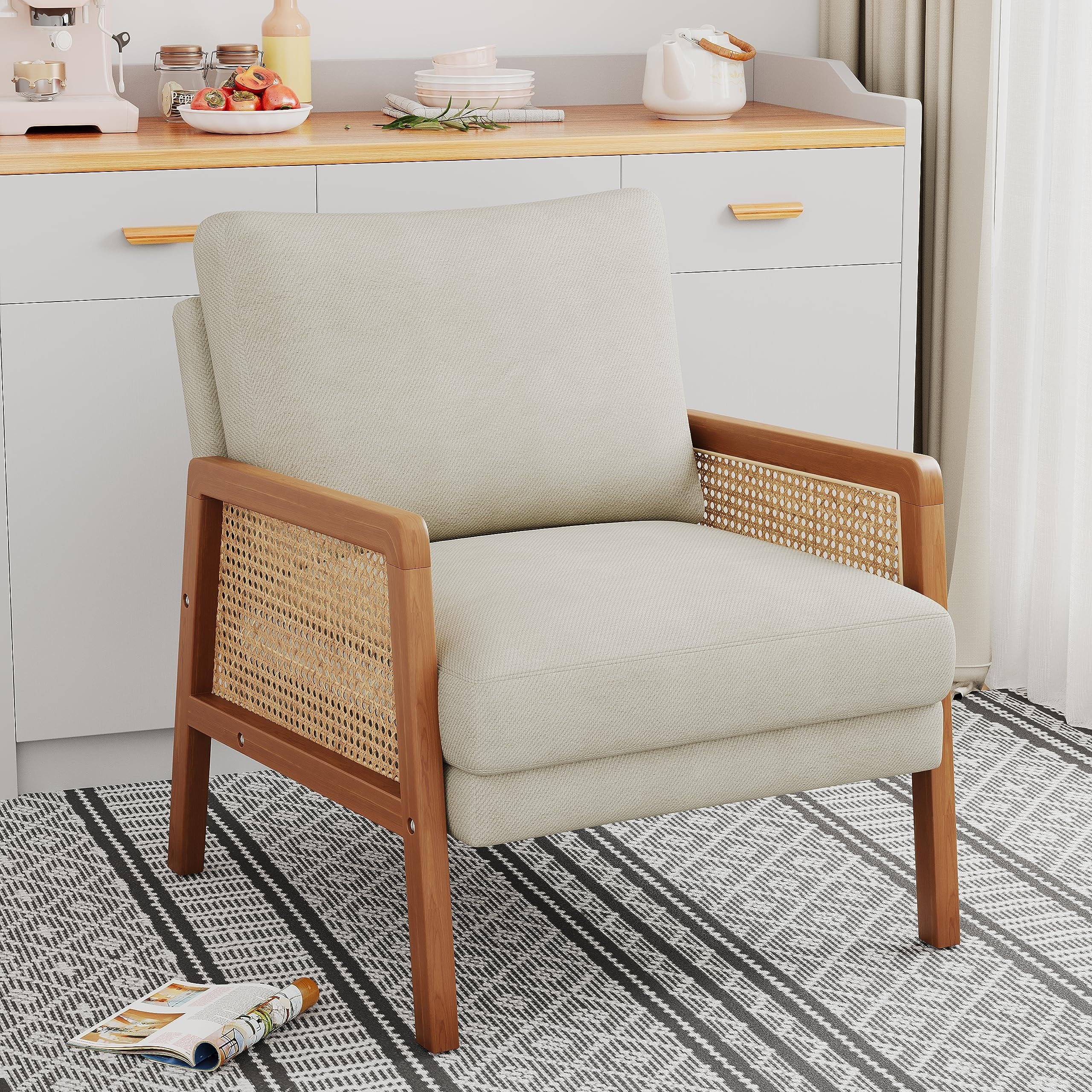 🏆【Cane Paneled Armrests】What makes this accent chair unique is that we adopt handcrafted cane webbing to form beautiful woven arms. It is 100% natural and safe for your health. The natural hue and stylish texture add warmth and openness to your home or office.