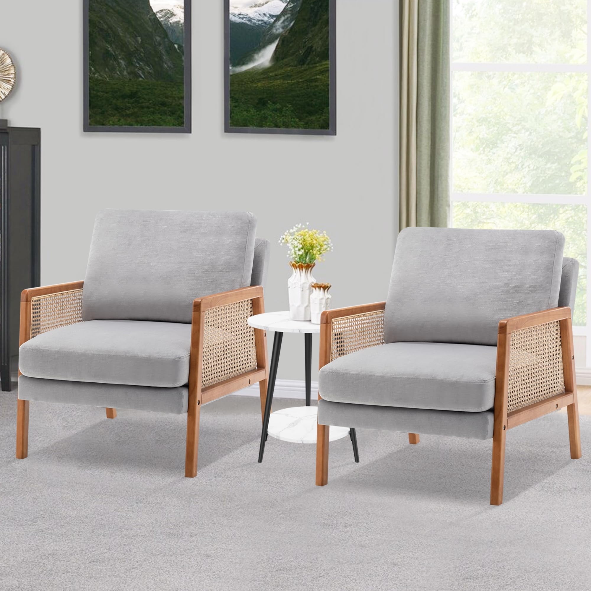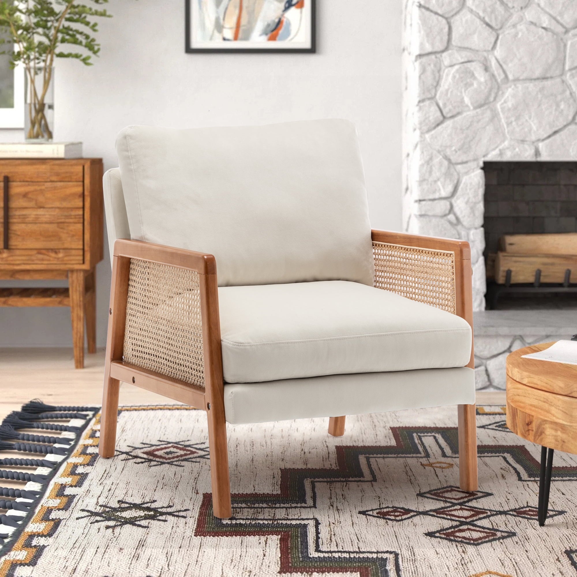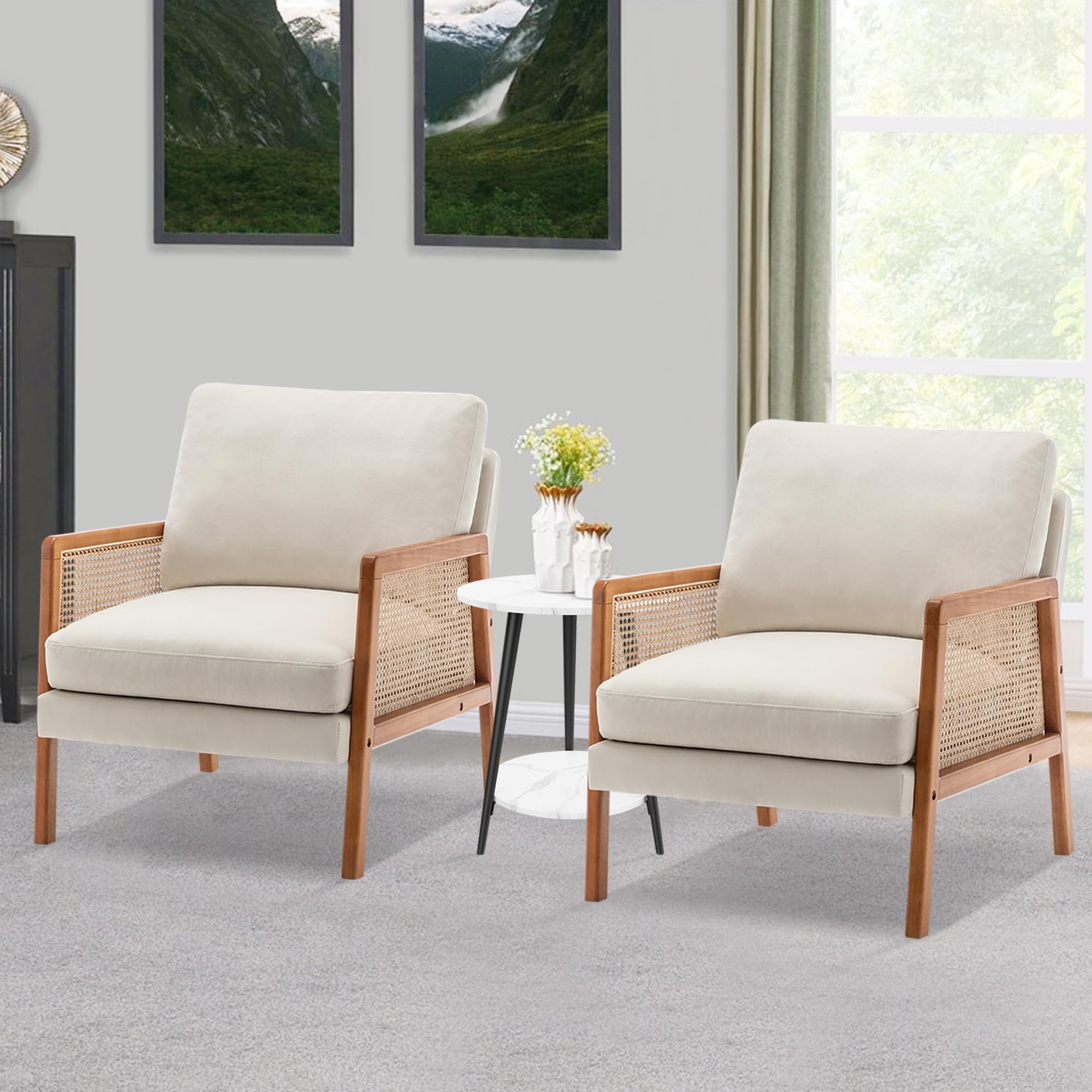 🏆【Cane Paneled Armrests】What makes this accent chair unique is that we adopt handcrafted cane webbing to form beautiful woven arms. It is 100% natural and safe for your health. The natural hue and stylish texture add warmth and openness to your home or office.